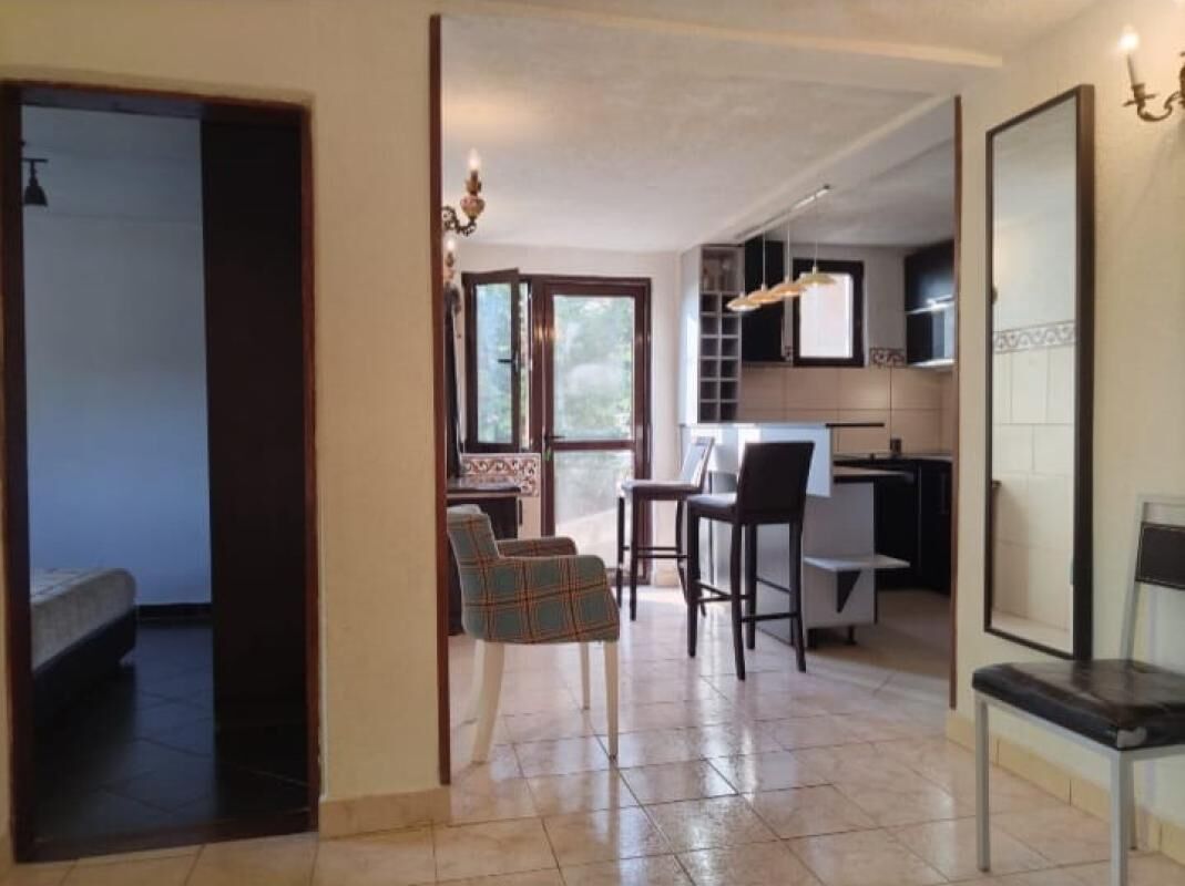 Маленький уютный домик в красивом тихом месте. Площадь дома 40 м2 + терраса с видом на море. Структура: отдельная спальня, гостиная, выделенная зона кухни со всем необходимым. В гостиной раскладывающийся диван. Кондиционер. При необходимости можно воспользоваться печкой на дровах. Вода привозная. Большая терраса на крыше с прекрасным видом на море и горы. На ней удобный кухонный уголок, вода, холодильник, маленькая плита. Красивая прогулочная дорожка к набережной, где и зимой работают некоторые кафе, отель-ресторан "Калампер" с бассейном и спа-зоной. Всё в пешей доступности, супермаркет Воли в 5 минутах на машине, в 15 минутах пешком. До пляжа - 800 м У дома своя парковка. Условия аренды: 350 е/месяц + коммунальные услуги (оплата за 1 первый месяц + 1 последний месяц + депозит)