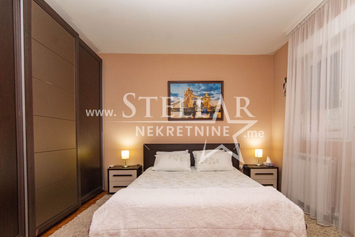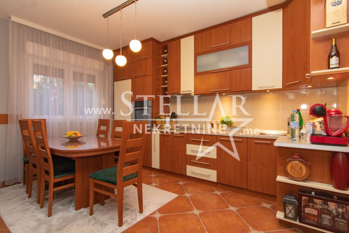 Местоположение дома: Grbe, Danilovgrad Площадь дома: 2 x 93m2 Комната: две комнаты на этаже Площадь двора: 500m2 Дом полностью меблирован, оба уровня. Планировка помещений абсолютно идентична. На первом этаже в детской комнате один раскладной диван, на первом этаже двухъярусные кровати. Верхний этаж отапливается на пеллетах и кондиционером, первый этаж на электричестве. Оба этажа имеют стиральные и сушильные машины. Во дворе достаточно места для парковки. У дома есть электрические ворота. В окрестностях дома царит деревенская атмосфера, чистый воздух и много природы. В нескольких минутах езды находится Spuž, а в десяти минутах - центр Подгорицы. Дом сдается на длительный срок с обязательным депозитом. ID недвижимости KU15 +382 69 618 445