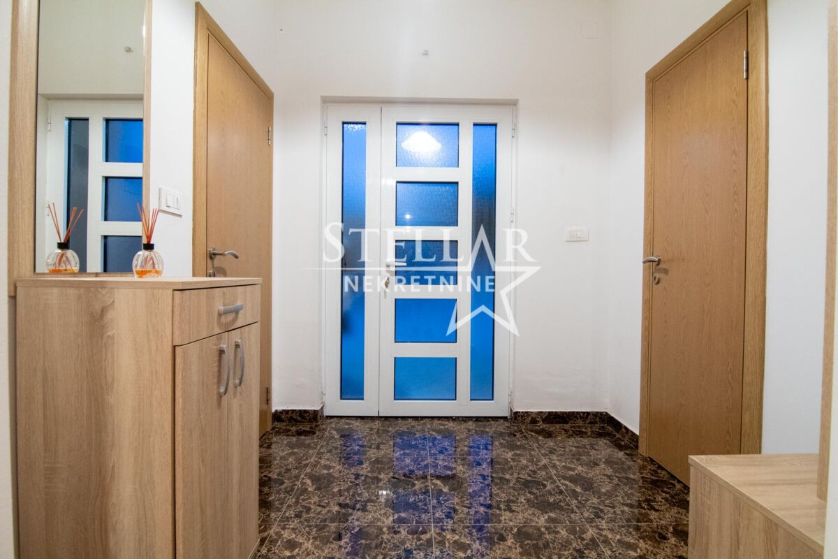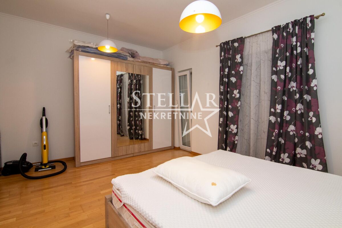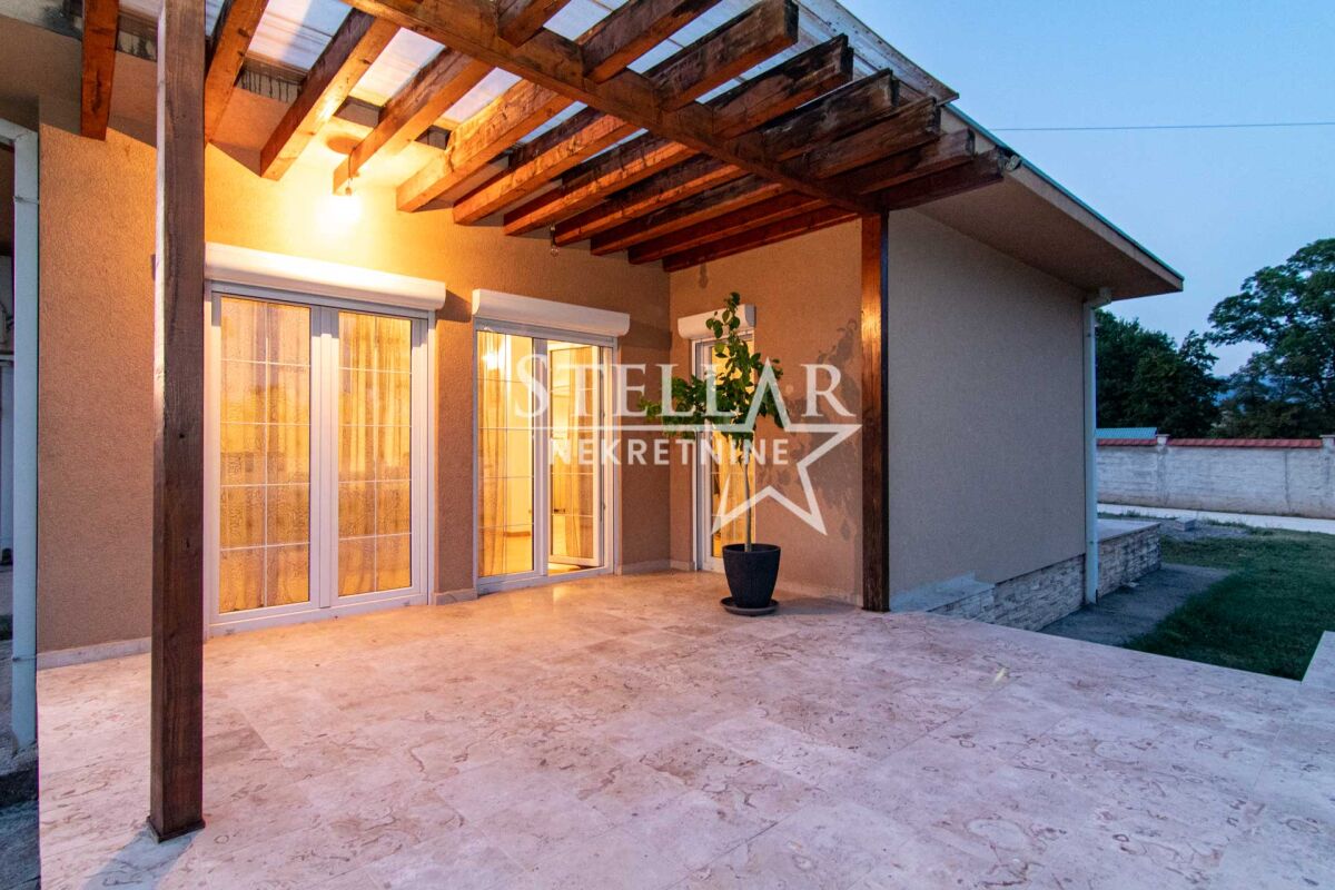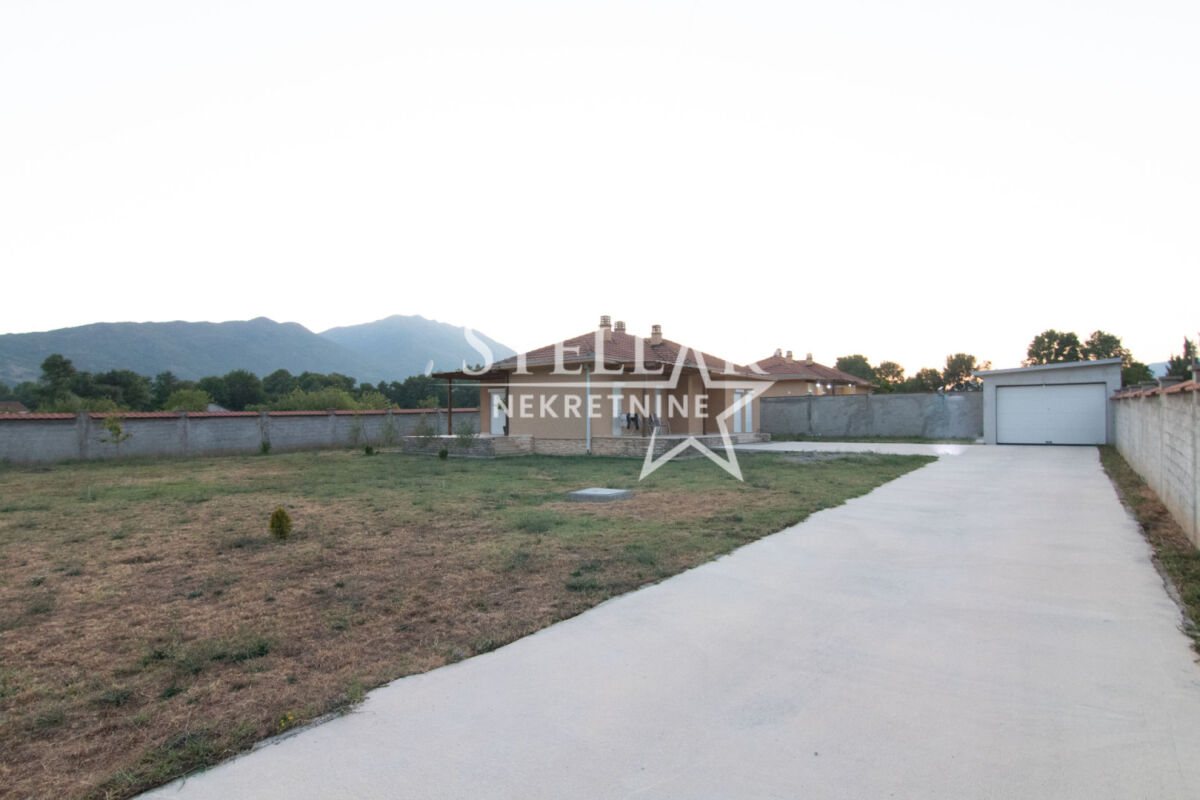 Сдается роскошно оборудованный дом в Даниловграде, в тихом и семейном районе Ястреб. Дом имеет общую площадь 170 квадратных метров, включая террасы, а полезная внутренняя площадь около 140 квадратных метров. По структуре состоит из двух комфортабельных спален, ванной комнаты, дополнительного туалета, коридора, кладовой и большой открытой комнаты площадью 100 квадратных метров, включающей гостиную, столовую и кухню. Весь дом оснащён тёплым полом, который работает на пеллетах или дровах, что обеспечивает исключительный тепловой комфорт зимой. Спальни оборудованы французскими кроватями и большими шкафами, а дополнительный уют создаёт обилие естественного света, проникающего через двери, которые ведут прямо из комнат во двор. Гостиная просторная и светлая. Кухня просторная, встроенная, полностью оборудована всеми необходимыми элементами и приборами – электрической плитой, посудомоечной машиной, двумя холодильниками с морозильниками, микроволновой печью и вытяжкой. Из кухни есть выход на одну из террас, что дополнительно повышает функциональность пространства. Дом наполнен светом и воздухом благодаря очень большому количеству стеклянных поверхностей. Всего имеется 7 двустворчатых и 5 одностворчатых дверей, каждая с рольставнями, равномерно распределённых по всем помещениям, включая даже туалет. В ванной комнате также есть окно, которое является единственным классическим окном в доме, что дополнительно подчёркивает специфику и современный дизайн пространства. Двор полностью огорожен бетонной стеной высотой два метра, что обеспечивает полную приватность и безопасность. Вход во двор осуществляется через широкие раздвижные ворота. На территории двора находится гараж с рольставнями на дистанционном управлении, в гараже размещено полное оборудование и инструменты, необходимые для обслуживания дома и двора. Дом будет доступен для заселения с 1 сентября, учитывая, что сейчас идёт завершающая стадия оборудования. ID недвижимости B47 +382 67 166 448