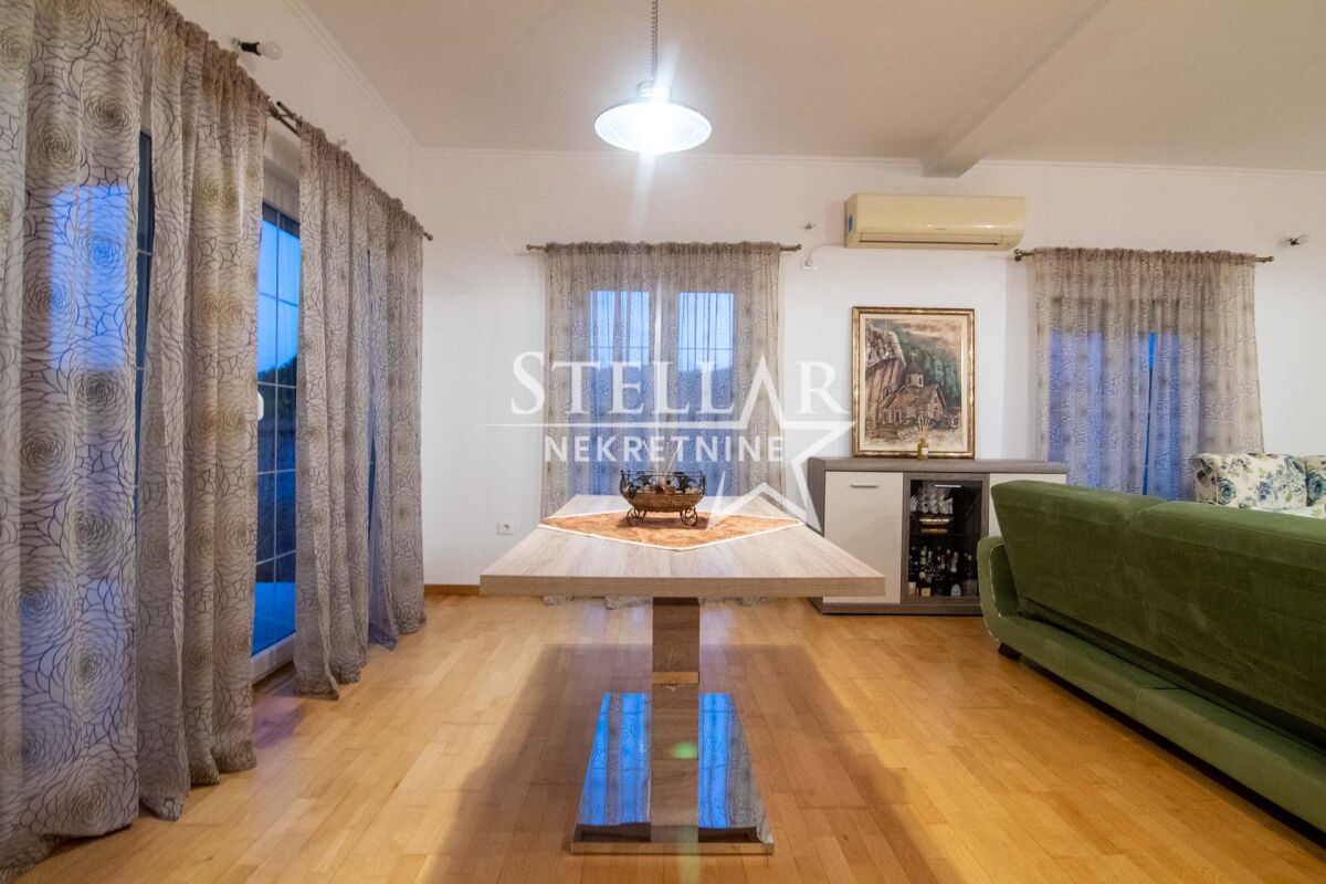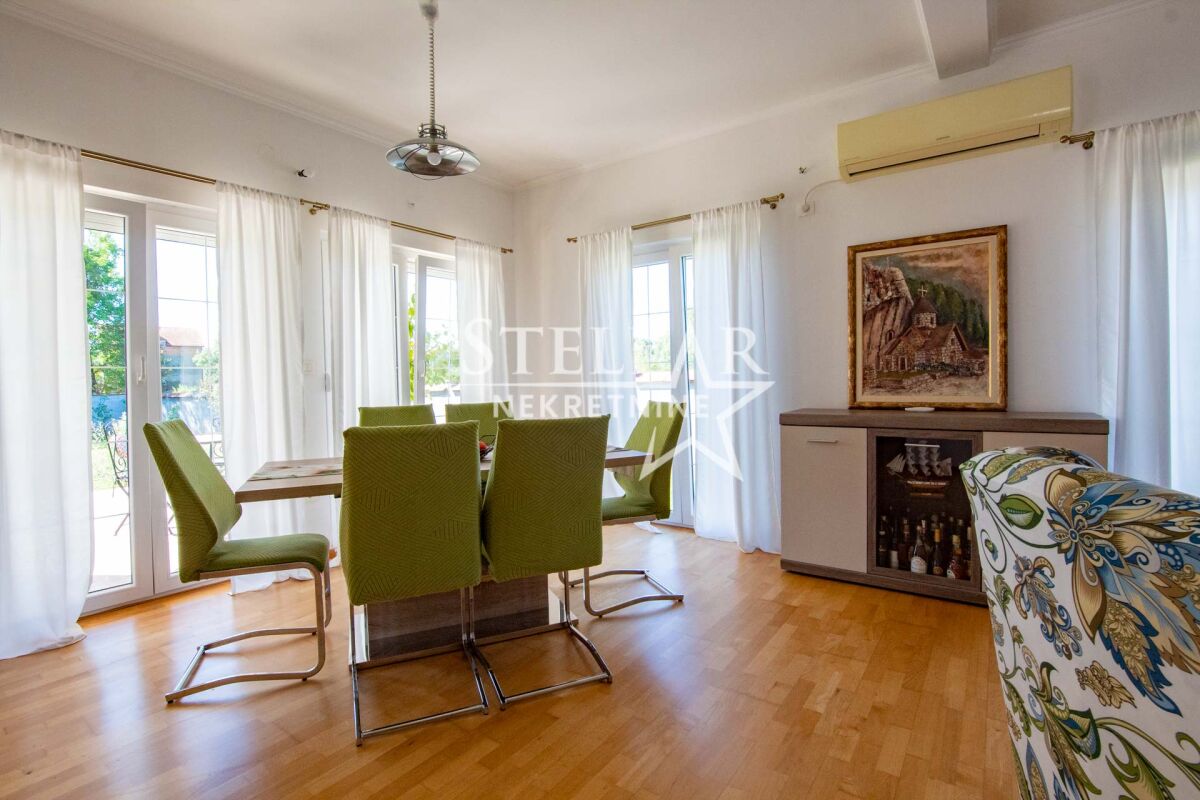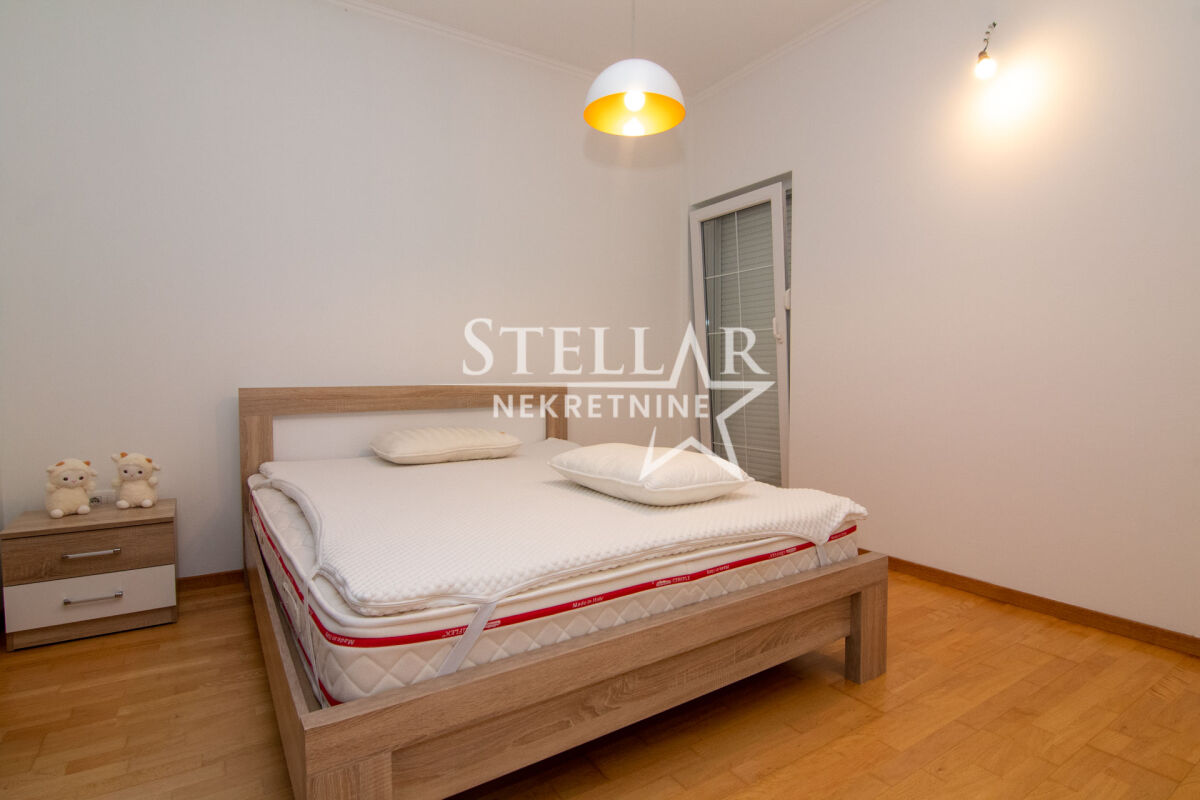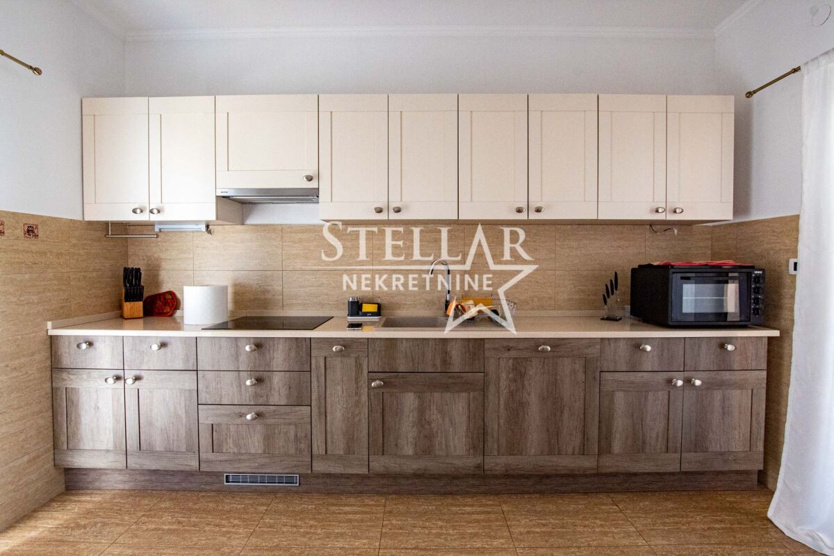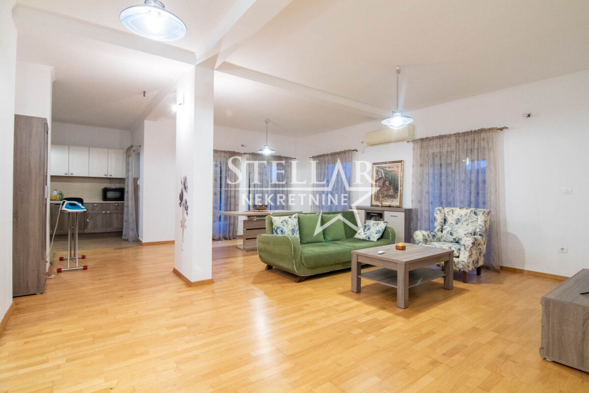 Сдается роскошно оборудованный дом в Даниловграде, в тихом и семейном районе Ястреб. Дом имеет общую площадь 170 квадратных метров, включая террасы, а полезная внутренняя площадь около 140 квадратных метров. По структуре состоит из двух комфортабельных спален, ванной комнаты, дополнительного туалета, коридора, кладовой и большой открытой комнаты площадью 100 квадратных метров, включающей гостиную, столовую и кухню. Весь дом оснащён тёплым полом, который работает на пеллетах или дровах, что обеспечивает исключительный тепловой комфорт зимой. Спальни оборудованы французскими кроватями и большими шкафами, а дополнительный уют создаёт обилие естественного света, проникающего через двери, которые ведут прямо из комнат во двор. Гостиная просторная и светлая. Кухня просторная, встроенная, полностью оборудована всеми необходимыми элементами и приборами – электрической плитой, посудомоечной машиной, двумя холодильниками с морозильниками, микроволновой печью и вытяжкой. Из кухни есть выход на одну из террас, что дополнительно повышает функциональность пространства. Дом наполнен светом и воздухом благодаря очень большому количеству стеклянных поверхностей. Всего имеется 7 двустворчатых и 5 одностворчатых дверей, каждая с рольставнями, равномерно распределённых по всем помещениям, включая даже туалет. В ванной комнате также есть окно, которое является единственным классическим окном в доме, что дополнительно подчёркивает специфику и современный дизайн пространства. Двор полностью огорожен бетонной стеной высотой два метра, что обеспечивает полную приватность и безопасность. Вход во двор осуществляется через широкие раздвижные ворота. На территории двора находится гараж с рольставнями на дистанционном управлении, в гараже размещено полное оборудование и инструменты, необходимые для обслуживания дома и двора. Дом будет доступен для заселения с 1 сентября, учитывая, что сейчас идёт завершающая стадия оборудования. ID недвижимости B47 +382 67 166 448