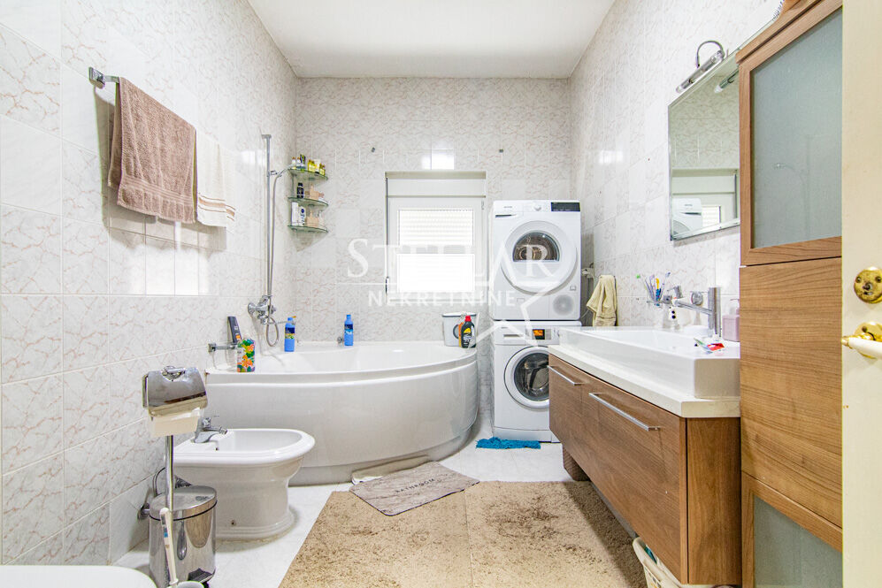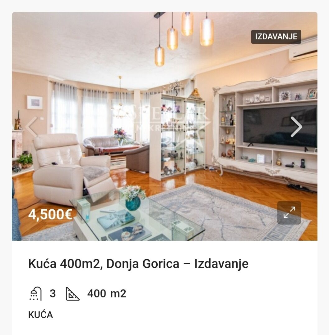 Местоположение дома: Донья Горица, Подгорица Площадь дома: 400м2 Спальни: 7 Площадь двора: 1800 Сдается красиво оборудованный дом в Доньей Горицы, идеальный для комфортной семейной жизни или для деловых целей. Дом состоит из двух этажей и соединен внутренними и внешними лестницами, при этом верхний этаж зарегистрирован как коммерческое помещение. С площадью более 400м², эта недвижимость предлагает высококачественное оборудование и все необходимое для комфортного проживания. Система отопления центральная и позволяет использовать электричество, дрова и пеллеты, в то время как 7 кондиционеров распределены по ключевым помещениям: один в входном холле, один в столовой, два в гостиной, один в коридоре спальной части и два на этаже. Полностью оборудованная кухня содержит холодильник, посудомоечную машину и морозильник. За кухней находится помещение, которое служит как кладовая. На первом этаже расположены две ванные комнаты – одна с ванной, другая с просторной walk-in душевой кабиной. В большей ванной комнате размещены также стиральные и сушильные машины. Верхний этаж предлагает просторный холл, три многофункциональные комнаты, которые могут служить как офисы или спальни, два туалета и дополнительную кухню. Двор просторный площадью 1800м2, огорожен и обеспечивает полную приватность. За домом находится бассейн с летней кухней и грилем, идеальный для отдыха на свежем воздухе. Перед домом есть крытая парковка. Существует возможность частичной аренды дома, то есть одного или другого этажа, в зависимости от предпочтений клиента. Дом сдается на длительный срок с обязательным депозитом. ID недвижимости M547 +382 69 618 445 info@stellarnekretnine.me