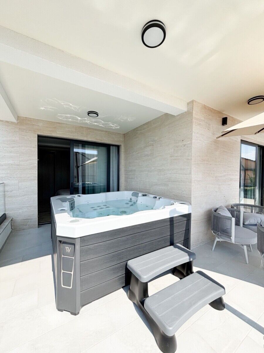 Сдается роскошная вилла в Тивте – 330 м² В продаже современная, совершенно новая вилла, расположенная в тихом районе Тивта, в непосредственной близости от центра города. Вилла до сих пор не была заселена и предлагает первоклассный комфорт, идеальна для семейной жизни или длительного проживания. Характеристики объекта: Общая площадь: 330 м² Парковка на 5 автомобилей Просторная гостиная с столовой и кухней 4 спальни 4 ванные комнаты + туалет 4 террасы с прекрасным видом Гараж Частный двор с бассейном Wellness услуги: джакузи и сауна Цена аренды: 5.000 € в месяц