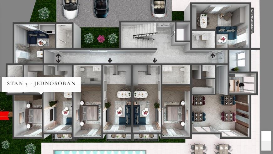 Prodaja stanova u ekskluzivnom kompleksu sa bazenom,Bar (Jednosoban stan 62.90m2)