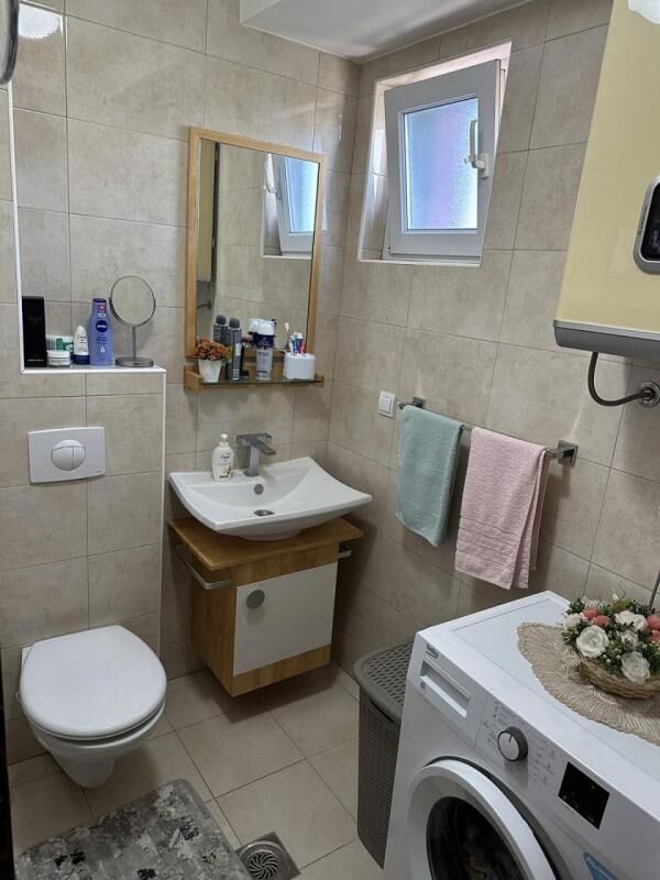 Na drugom spratu nove sedmospratnice prodaje se stan od 54 m2. Stan je namešten i opremljen tehnikom. U dvorištu se nalazi svoje parking mesto. Raspored: hodnik, kuhinja, spojena sa dnevnom sobom, 2 spavaće sobe, kupatilo i terasa. Udaljenost do mora je 600 metara.