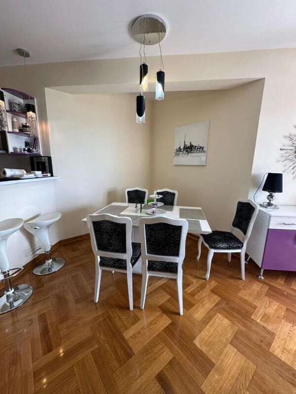 Prostrana stan sa panoramskim pogledom na more, smešten u prestižnom stambenom kompleksu Zeta Gradnja, na prvoj liniji obale. Osnovne karakteristike: površina: 115 m2, 5. sprat, 3 spavaće sobe. Svetla dnevna soba i udoban raspored. Direktan pogled na more sa balkona. Infrastruktura i pogodnosti: moderna dečja igraonica, prostrano parkiralište. U blizini: kafići, prodavnice, bolnice, cela gradska infrastruktura na dohvat ruke.