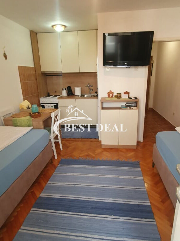 Stan studio u centru Bara blizu mora. Površina stana 30m2. Stan se nalazi na 4. spratu u zgradi bez lifta. Stan je posle kompletne renovacije. Prodaje se sa nameštajem i tehnikom. Pogled na more. Udaljenost od mora 150 metara.