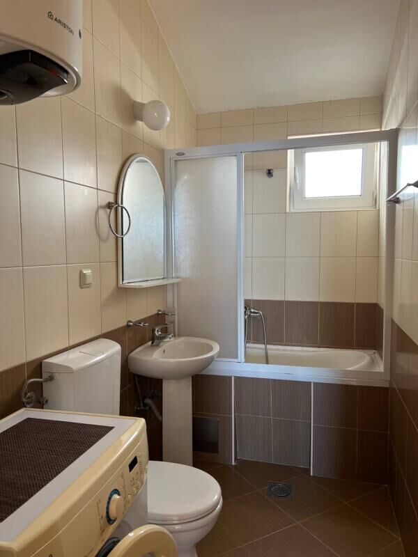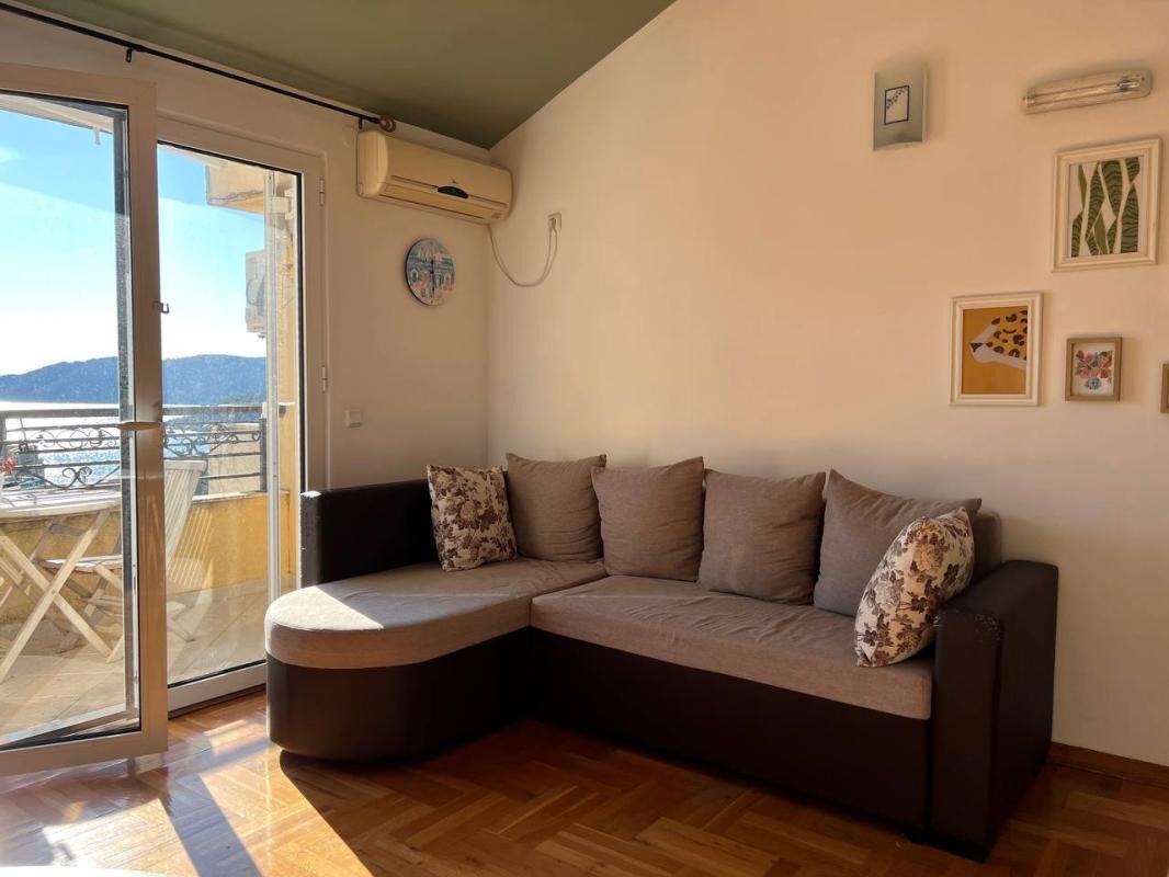 Udoban stan površine 38m2 na 4. spratu (poslednji sprat, pod krovom, veoma visoki plafoni). Struktura: 1 spavaća soba, kuhinja-dnevna soba, balkon, kupatilo. U dnevnoj sobi ima klima uređaj. U kuhinji su šporet, frižider, mikrotalasna i čajnik. Sa balkona se pruža veoma lep pogled na more. Do mora se stiže peške za 5 minuta. Pored zgrade se nalazi mini-market.