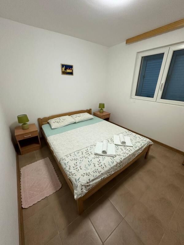 Stan površine 60m2 na prizemlju, 300 m od mora. U stanu: 2 spavaće sobe, dnevna soba sa kuhinjom, kupatilo sa tušem, terasa sa delimičnim pogledom na more, hodnik. U stanu se nalazi sav potrebni nameštaj i tehnika. Parking ispred zgrade. Do mora 5 minuta peške. Stan je legalizovan.