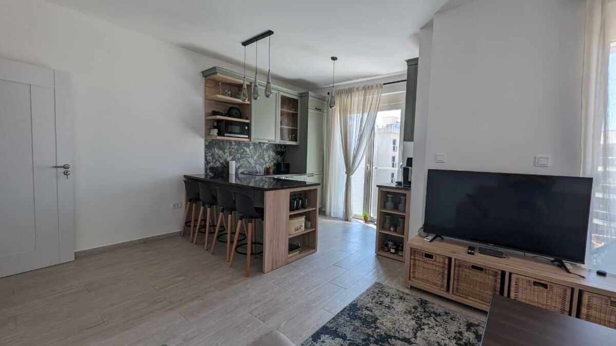ID BD-538/10 Продается квартира с 2 спальнями в Бечичи (район Idea) Площадь: 72 м² Этаж: 5-й (в доме два лифта) Расположение: Бечичи, новый дом 2023 года постройки, всего 500 м до моря (5 минут пешком по ровной дороге) Планировка и характеристики: Прихожая Гостиная с кухней Две спальни Ванная комната Отдельный туалет Терраса Особенности: Полностью оборудована качественной итальянской мебелью и бытовой техникой Парковочное место в подземном гараже Светлая и теплая квартира, готова к проживанию Цена: 235 000 €