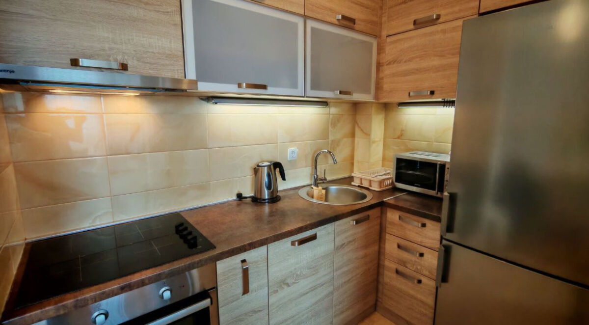 Ovaj stan nudi direktan pogled na more u Bečićima. Samo 450 metara od mora. Stan je površine 52 m² i nalazi se na drugom spratu zgrade od 5 spratova sa liftom i podzemnom garažom. Raspored se sastoji od ulaznog hodnika, dnevne sobe sa kuhinjom, spavaće sobe sa garderoberom, kupatila i velike terase sa pogledom na more i planine. Plafoni su visoki 3 metra. Podno grejanje u kupatilu. Stan je namešten i opremljen aparatima. Dodatna prednost je veliki parking ispred zgrade, gde su uvek dostupna mesta. Potrebna je savršena dokumentacija. Plaćanje je putem bankovnog transfera, sa delimičnim prihvatanjem gotovine.