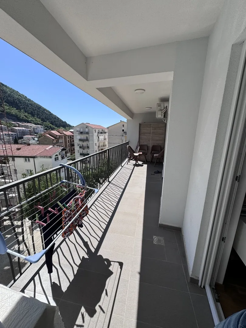 Prodaja Budva br. 4059 Na prodaju Stan sa 2 spavaće sobe sa pogledom na planine, nova zgrada, lift. Oblast Podkošljun. 3. sprat. Velika terasa. Parket. Kvalitetna renovacija, nameštaj i tehnika. Prostran dnevni boravak sa trpezarijom i velikom kuhinjom. Do mora 15 minuta peške. Tiho mesto. U blizini prodavnica, takođe u blizini veliki hipermarket, restorani, škole, vrtići, apoteke. Veoma prijatan, udoban, lep i čist stan za porodicu. Ukupna površina - 66m2. Ukupno parkiranje pod rampom na daljinsko upravljanje za stanare zgrade.