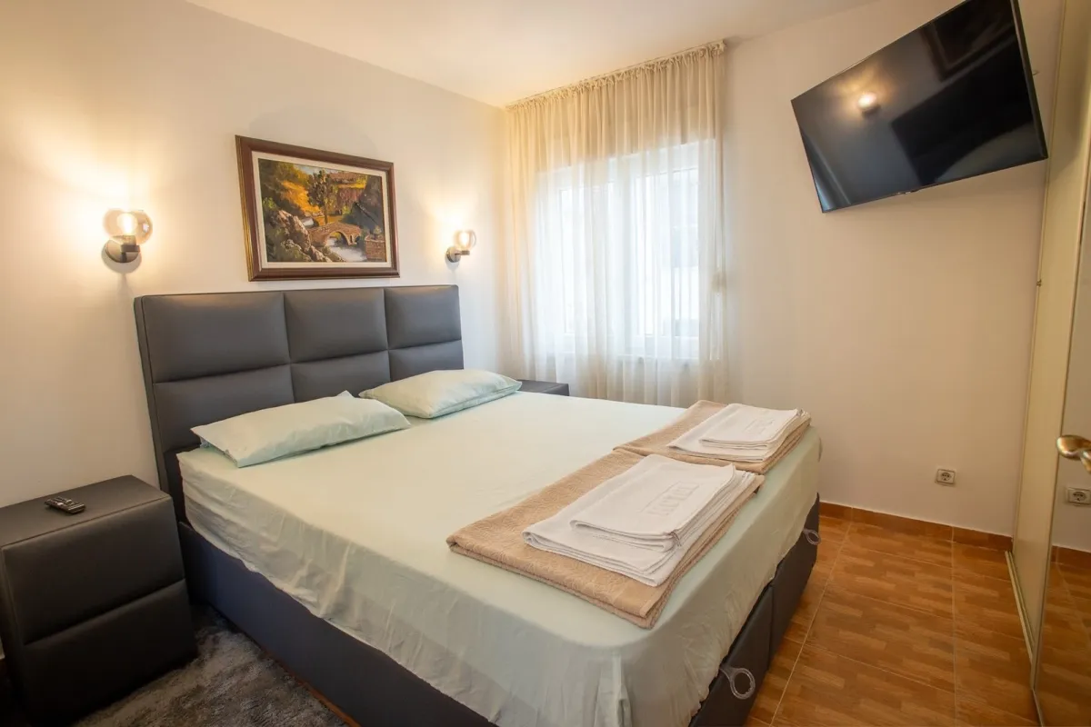Budva na prodaju #7447. Udoban stan od 68 m² u prizemlju stambene zgrade u Budvi, na samo nekoliko minuta hoda od mora. Potpuno namešten i opremljen aparatima, ne zahteva dodatna ulaganja i spreman je za useljenje ili izdavanje. Raspored i karakteristike: 2 udobne spavaće sobe, svetla dnevna soba u kombinaciji sa kuhinjom, 2 prostrane terase, od kojih je jedna zastakljena – idealno mesto za opuštanje, 1 kupatilo. Lokacija: pored hotela Bracera, dobro razvijena infrastruktura – prodavnice, kafići, apoteka, stanica javnog prevoza, samo 5 minuta hoda do mora. Prednosti: stan je potpuno useljiv. Odlična opcija za udoban život tokom cele godine. Visoka investiciona atraktivnost – idealan za izdavanje.