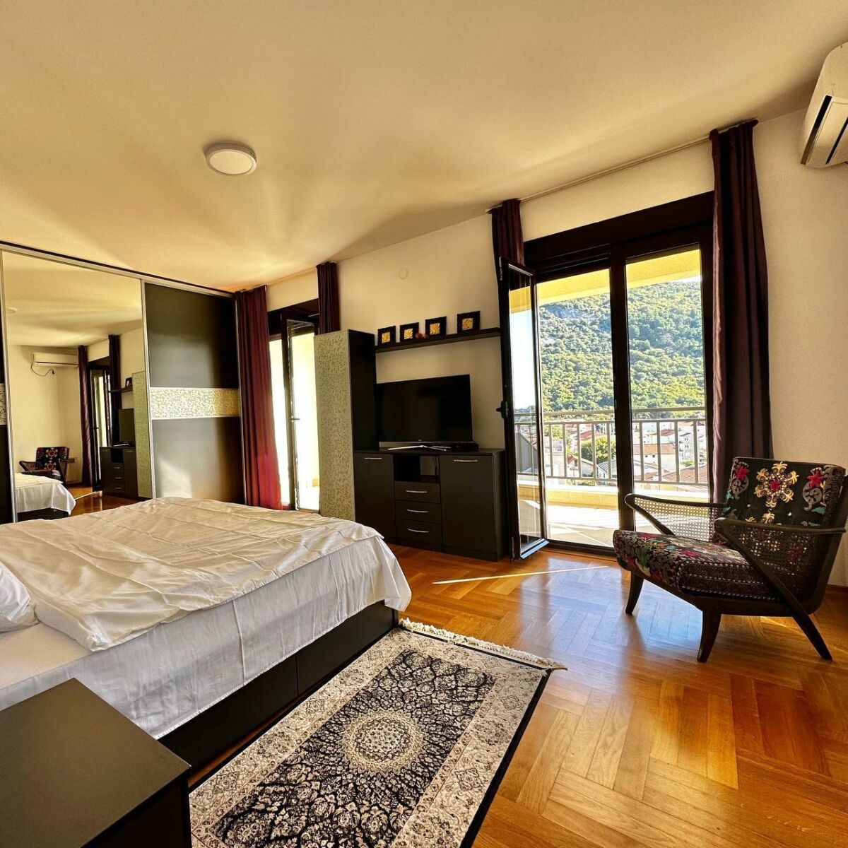 Prodaja Stan u Budvi Prodaje se prostran stan na poslednjem, 7. spratu. Predstavlja spoj dveju stanova sa dva odvojena ulaza, što omogućava po želji da ih razdvojite. Karakteristike stana: • Ukupna površina: 171 m² • Sprat: 7. sprat, lift • Spavaće sobe: 4 + kabinet • Kupatila: 3 • Dnevna soba sa kuhinjom • Panoramska terasa sa pogledom na more • Video nadzor u kući • Svaka soba opremljena sistemima hlađenja i grejanja Cena: 550 000 € Oksana (Viber / WhatsApp / Telegram) +382 670 506 33 Kancelarija: Tivat, Donja Lastva (pored Idea marketa)