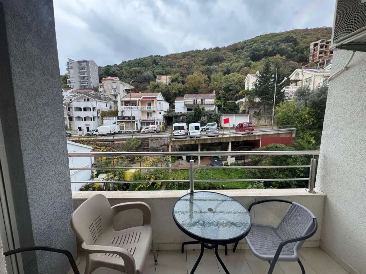 Budva na prodaju #7586. Jednosoban stan na prodaju u Budvi, novogradnja, ulica Maslina, blizu centra grada. Lift. Terasa sa pogledom na planine. Parket. 42 kvadratnih metara. 7 minuta hoda do centra grada.