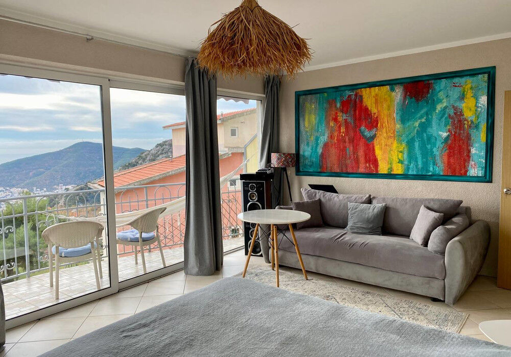 Budva, naselje Markovići. Jednosoban stan sa panoramskim pogledom na more i Budvu. Udaljenost od Budve je 5 km. Površina je 52 m². Drugi sprat. Dodatna površina - dva balkona koja nisu uključena u poresku površinu. Stan se prodaje potpuno namešten i opremljen za život. Fasada kuće ima visok stepen termoizolacije, leti čuva hladnoću, a zimi toplotu. Legalizovan, dokumentacija je uredna, nema tereta. Grejanje je inverter klima uređaj, kao i peć na drva, koja stvara posebnu atmosferu udobnosti. Struktura: — kuhinja-dnevni boravak — velika spavaća soba sa panoramskim prozorima i pogledom na more i Budvu (može se lako podeliti na dve sobe ako se želi) — 2 balkona za jutarnju kafu i večernje zalaske sunca Do Budve se stiže za 10 minuta automobilom, a po želji i peške za 30 minuta, ili dnevnim minibusem sa intervalom od 2 sata. Stan je idealan za stalni boravak. Pomoći ćemo vam u dobijanju boravišne dozvole, otvaranju firme i drugim neophodnim koracima za asimilaciju u prelepu i uvek cvetajuću Crnu Goru. Dodatne informacije dostupne su na zahtev, uz registraciju klijenta. Sva pitanja optimizacije cena, šema plaćanja i rokova rešava isključivo Prodavac, na ličnom sastanku. Investiranje u nekretnine na moru postalo je profitabilnije nego ikada.