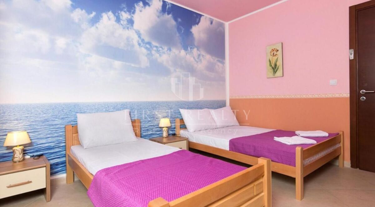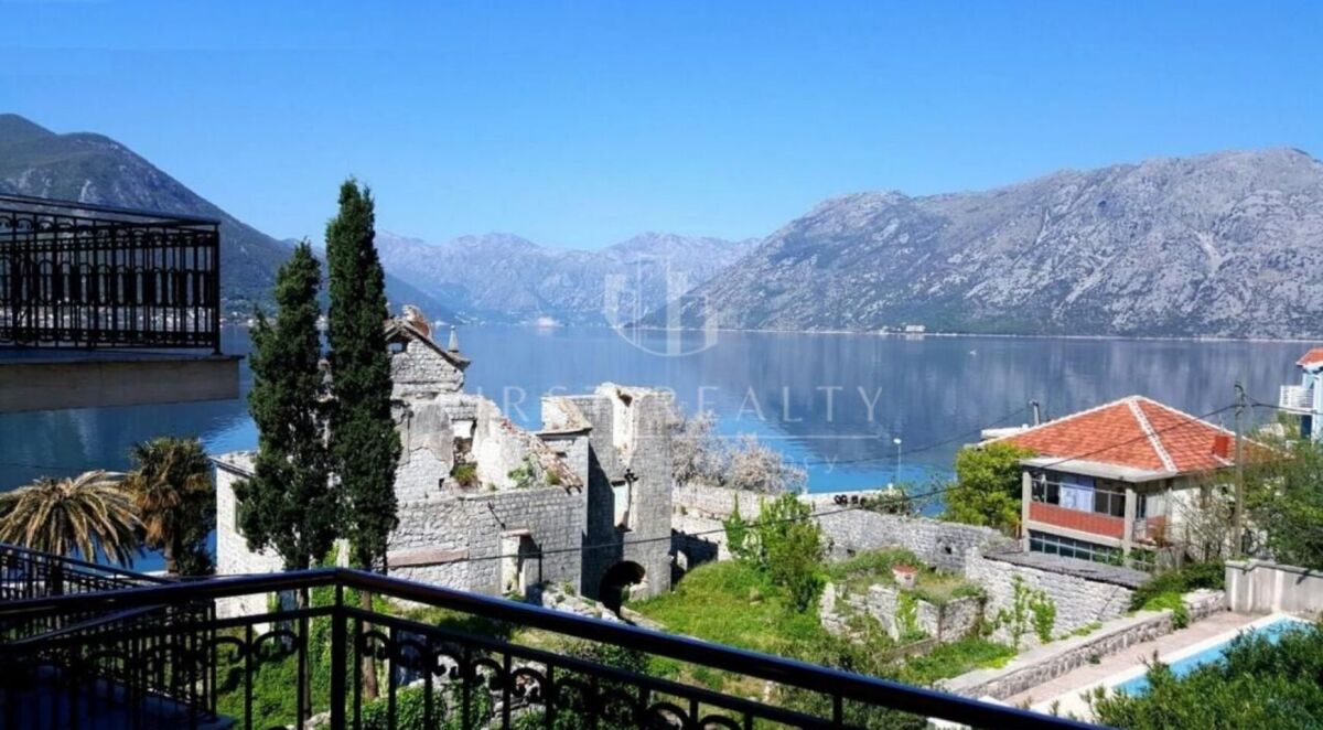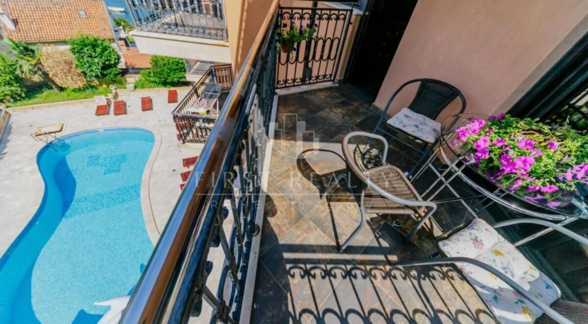 Nudimo na prodaju prelep, veoma luksuzno namešten dvosoban stan na drugoj liniji u Dobroti (blizu Kotora). Površina stana je 80 m2. Iz svakog prozora i sa terase pružaju se jedinstveni pogledi na čitav Bokokotorski zaliv! Zatvoreni kompleks se nalazi u oblasti hotela Forza Mare i poseduje sopstveni bazen i prostor za rekreaciju. Kompleks je ograđen i pod 24-časovnim obezbeđenjem i video nadzorom. Stan se sastoji od: dnevne sobe, kuhinje sa trpezarijom, 2 prostrane spavaće sobe, kupatila i nekoliko terasa sa predivnim pogledom na more i stare bokeljske kuće. Stan je opremljen kvalitetnim nameštajem i aparatima; u enterijer i stolariju je uloženo oko 50.000 evra. Dobrotska riva je udaljena samo 50 metara od kompleksa. Najbliža gradska plaža je na samo 5 minuta hoda. U blizini se nalaze supermarket, pekara i veliki broj restorana i kafića.