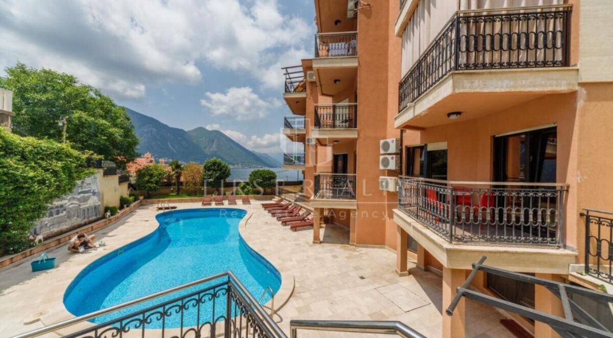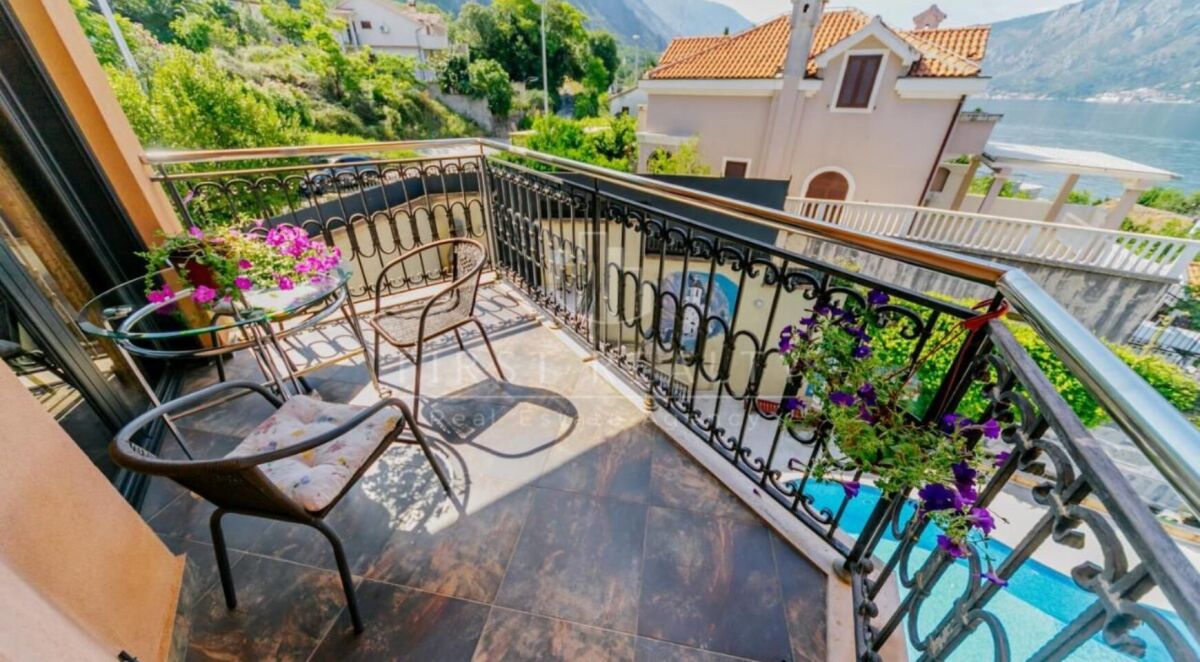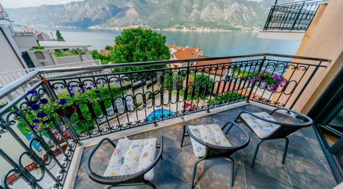 Nudimo na prodaju prelep, veoma luksuzno namešten dvosoban stan na drugoj liniji u Dobroti (blizu Kotora). Površina stana je 80 m2. Iz svakog prozora i sa terasa pružaju se jedinstveni pogledi na čitav Bokokotorski zaliv! Zatvoreni kompleks se nalazi u oblasti hotela Forza Mare i poseduje sopstveni bazen i prostor za rekreaciju. Kompleks je ograđen i pod 24-časovnim obezbeđenjem i video nadzorom. Stan se sastoji od: dnevne sobe, kuhinje sa trpezarijom, 2 prostrane spavaće sobe, kupatila i nekoliko terasa sa predivnim pogledom na more i stare bokeljske kuće. Stan je opremljen kvalitetnim nameštajem i aparatima; u enterijer i stolariju je uloženo oko 50.000 evra. Šetalište Dobrota je udaljeno samo 50 metara od kompleksa. Najbliža opštinska plaža je na samo 5 minuta hoda. U blizini se nalaze supermarket, pekara i veliki broj restorana i kafića.