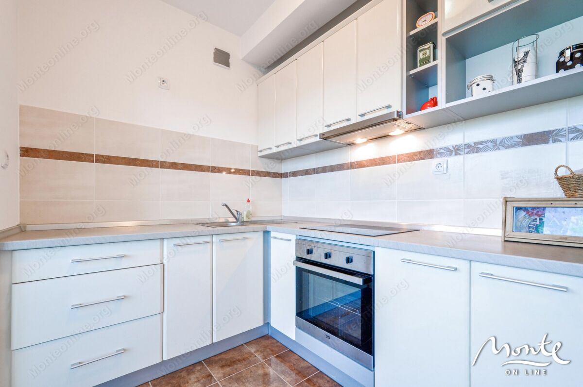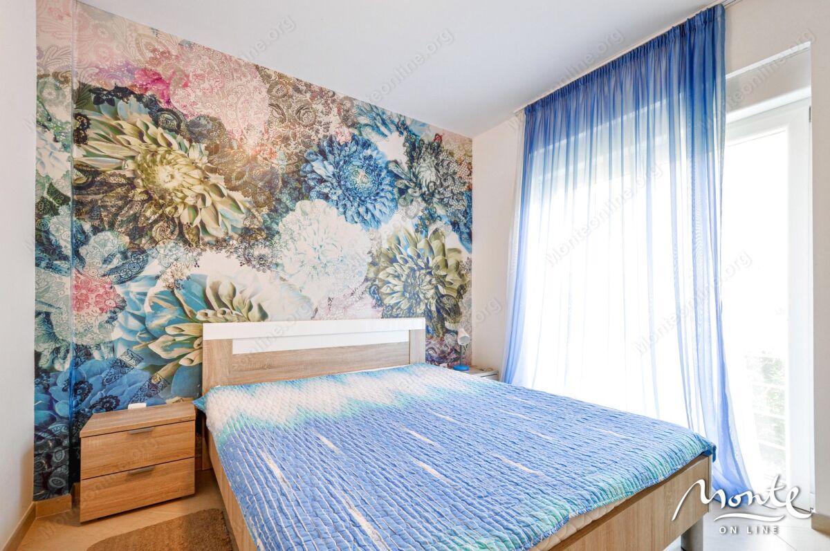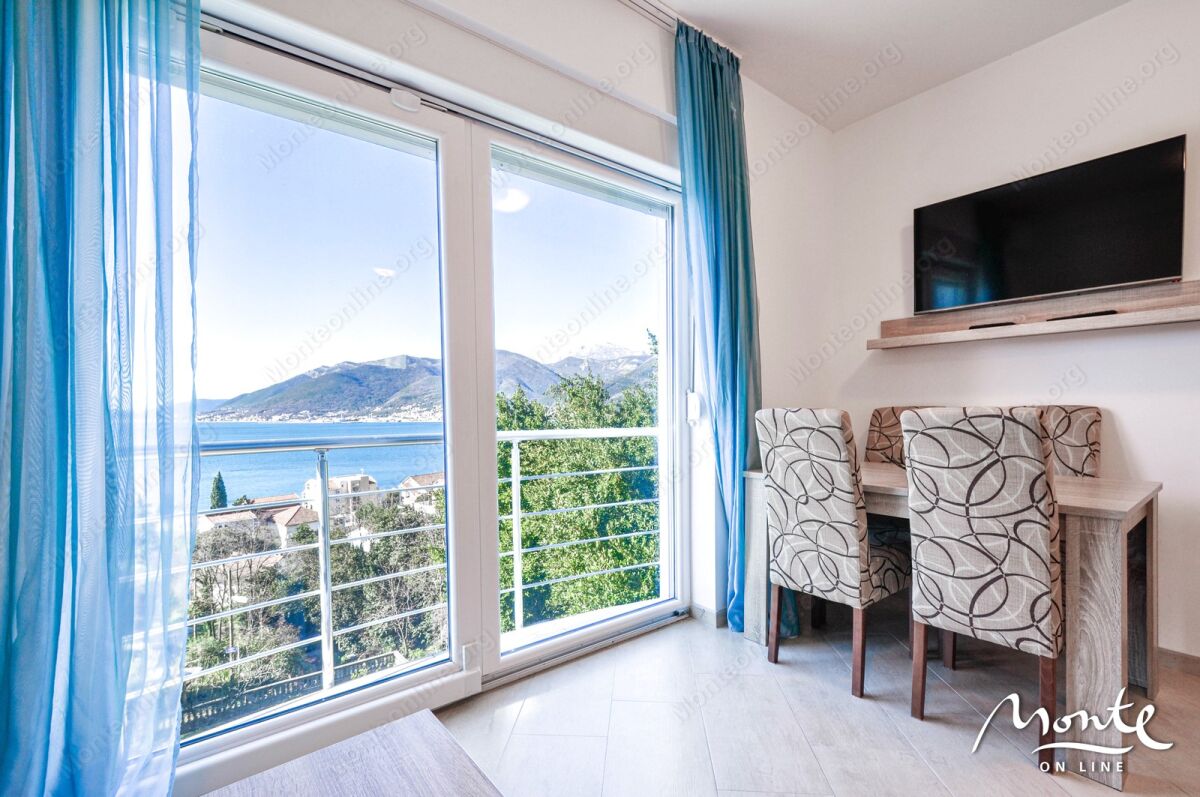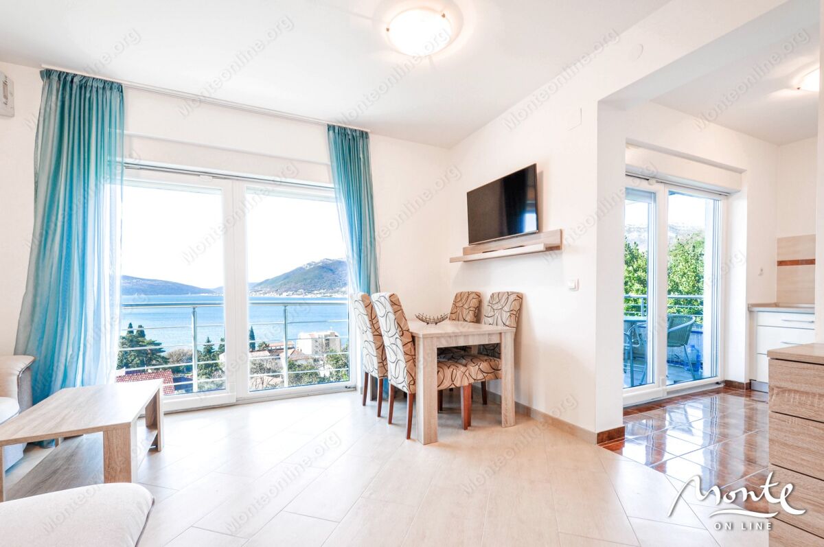 Prostrana, svetla stan u Tivtu (Donja Lastva), površina stana — 46 m² + ostava 20 m² u prizemlju sa mestom za skladištenje bicikala, čamaca/kajaka, drugih stvari (ostava — za sve vlasnike stanova). Stan se nalazi na drugom (srednjem) spratu. Privatno, udobno mesto bez buke, nema komšija kuća-u-kuću, ukupno 6 stanova u zgradi. Nezaklonjen pogled na more, panoramski prozori koji omogućavaju uživanje u pogledu i čine stan svetlim; do vode 200 m. Plaža Waikikki — 15 min. peške, marina Porto Montenegro — 20 min peške, turistički centar i pristanište za putovanje po Boko-Kotorskoj uvali — 5 min. U okolini se nalaze kafići, restorani, apoteke, prodavnice. Stan se prodaje potpuno namešten. Ima ograđeno parking mesto za auto.