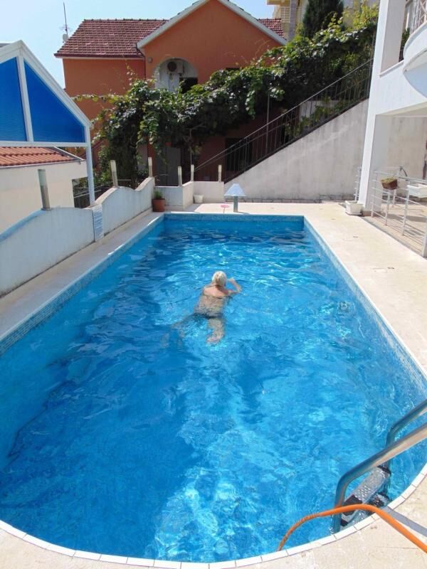 Stan površine 82m2 na 3. spratu (zgrade sa 4 sprata bez lifta) na 200 metara od mora. U stanu: 2 spavaće sobe, kuhinja sa prostranim dnevnim boravkom sa velikim brojem prozora, kupatilo sa tušem, velika terasa sa baštenskim nameštajem, hodnik. Potpuno namešten i sa svom potrebnom kućnom tehnikom: ugradni ormari, klima uređaji; terasa sa neverovatnim otvorenim pogledom na zaliv. Na ulazu - patio, može se organizovati dodatna soba ili mesto za skladištenje. Parking mesta oko kuće. Apartmani se nalaze u kompleksu od dve zgrade (po 8 stanova sa izolovanim ulazima), između njih bazen. Privatna, tiha lokacija. U pešačkoj udaljenosti supermarket, autobuska stanica. Do Starog grada 5 minuta peške, do obale - 10.