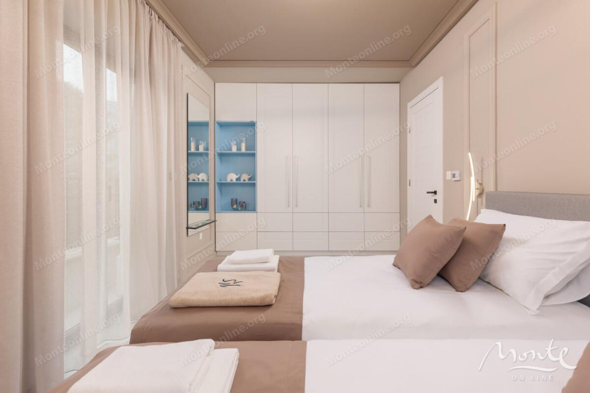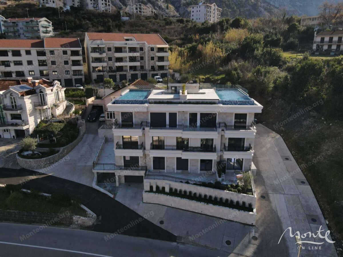 Nudimo jedinstvenu priliku da kupite moderne stanove na idealnoj lokaciji. Karakteristike objekata Prvi sprat: prostran stan površine 120 m² sa dva velika terasa, koja su savršena za odmor na svežem vazduhu. Stan sadrži 2 udobne spavaće sobe i 2 kupatila, što obezbeđuje udobnost za celu porodicu. Penthausi: dva luksuzna penthausa površine 200 m² sa privatnim bazenima na krovu. Svaki penthaus ima 3 svetle spavaće sobe. Potpuno su namešteni uzimajući u obzir sve savremene trendove, stvarajući atmosferu udobnosti i luksuza. Cene: - Stan na prvom spratu – 365,000 €; - Penthausi – 750,000 € i 800,000 € (razlika u rasporedu). Dodatne prednosti: - garažno mesto i ulični parking uključeni u cenu; - stanovi formata "Pametna kuća"; - podno grejanje; - povoljna lokacija u blizini svih potrebnih infrastruktura: prodavnice, restorani, plaže. Ne propustite priliku da postanete vlasnik stana iz snova u jednom od najlepših mesta Crne Gore!