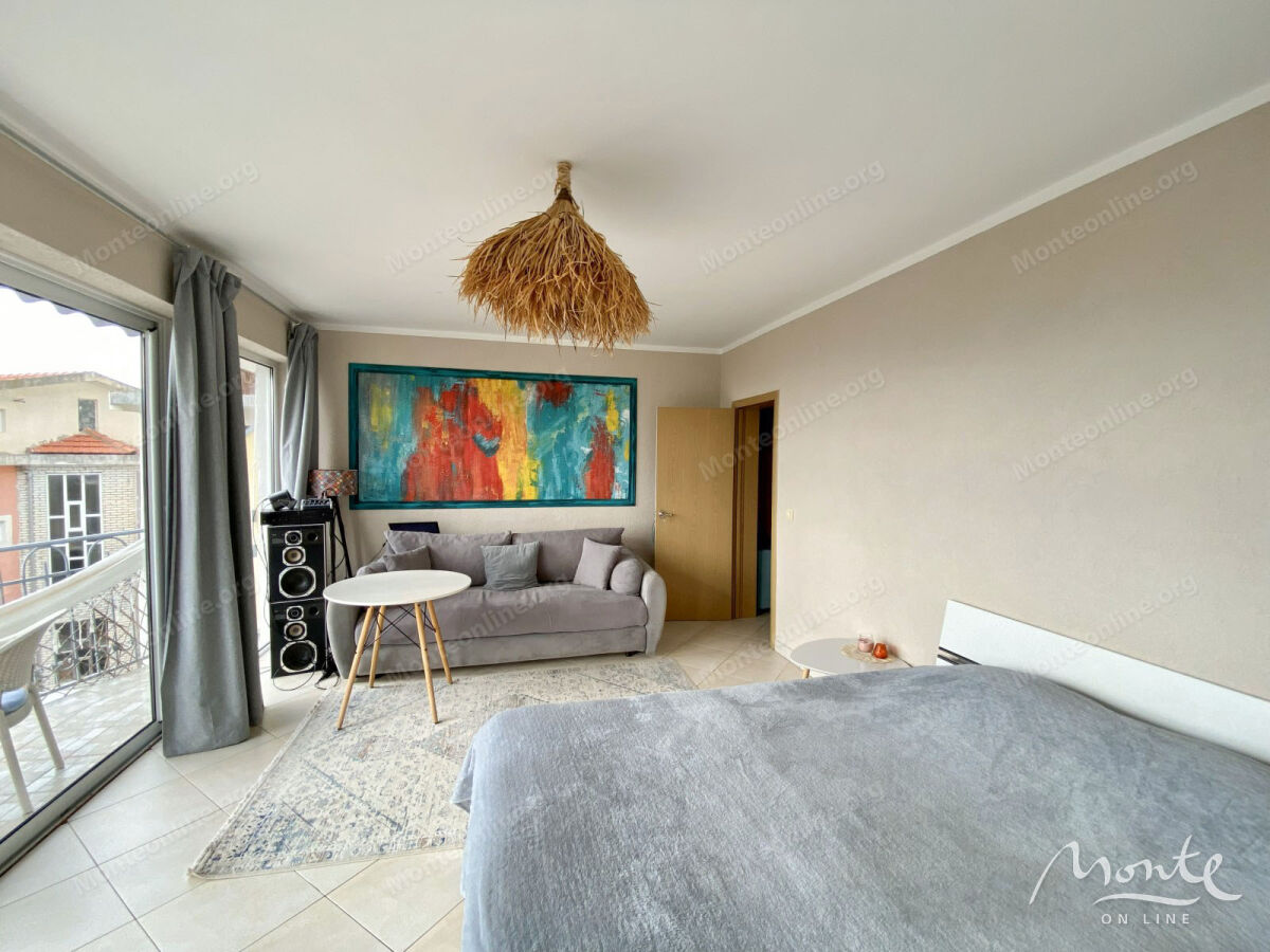 Udoban i svetao stan sa stambenom površinom od 52 m² + 2 balkona. Drugi sprat, puno svetla i udobnosti. Stan je potpuno renoviran i namešten — useli se i živi. Fasada je toplotno izolovana: zimi toplo, leti hladno. Klima uređaj za vrele dane i peć-kamin za atmosferične zimske večeri. Lokacija: Markovići. Samo 10 minuta automobilom do Budve, daleko od turističke gužve, ali sa brzim pristupom gradu. Raspored: • kuhinja-dnevna soba; • velika spavaća soba sa panoramskim prozorima i pogledom na more i Budvu (po želji lako se može podeliti na dve sobe); • 2 balkona. Stan je legalizovan, dokumenta su potpuno u redu.