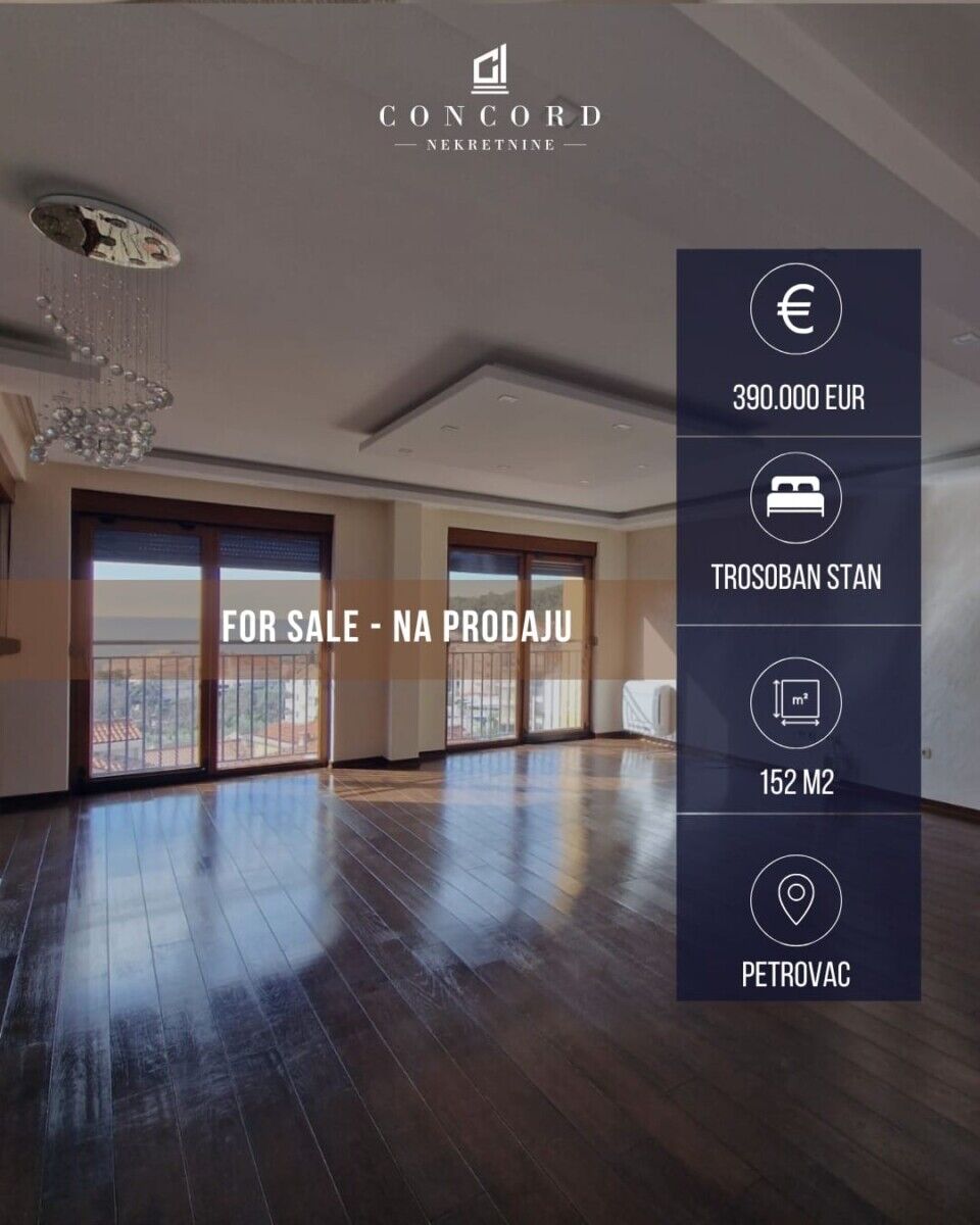 Na prodaju – Prostran stan u Petrovcu, 152 m², 3 spavaće sobe, 3 kupatila. Prodaje se luksuzan stan bez potrebe za dodatnim ulaganjima, osim namještaja. Nalazi se na trećem spratu zgrade, udaljenoj samo 300 metara od plaže. Detalji: Površina: 152 m²3 spavaće sobe3 kupatila Parking mjesto ispred zgrade: 10.000€.