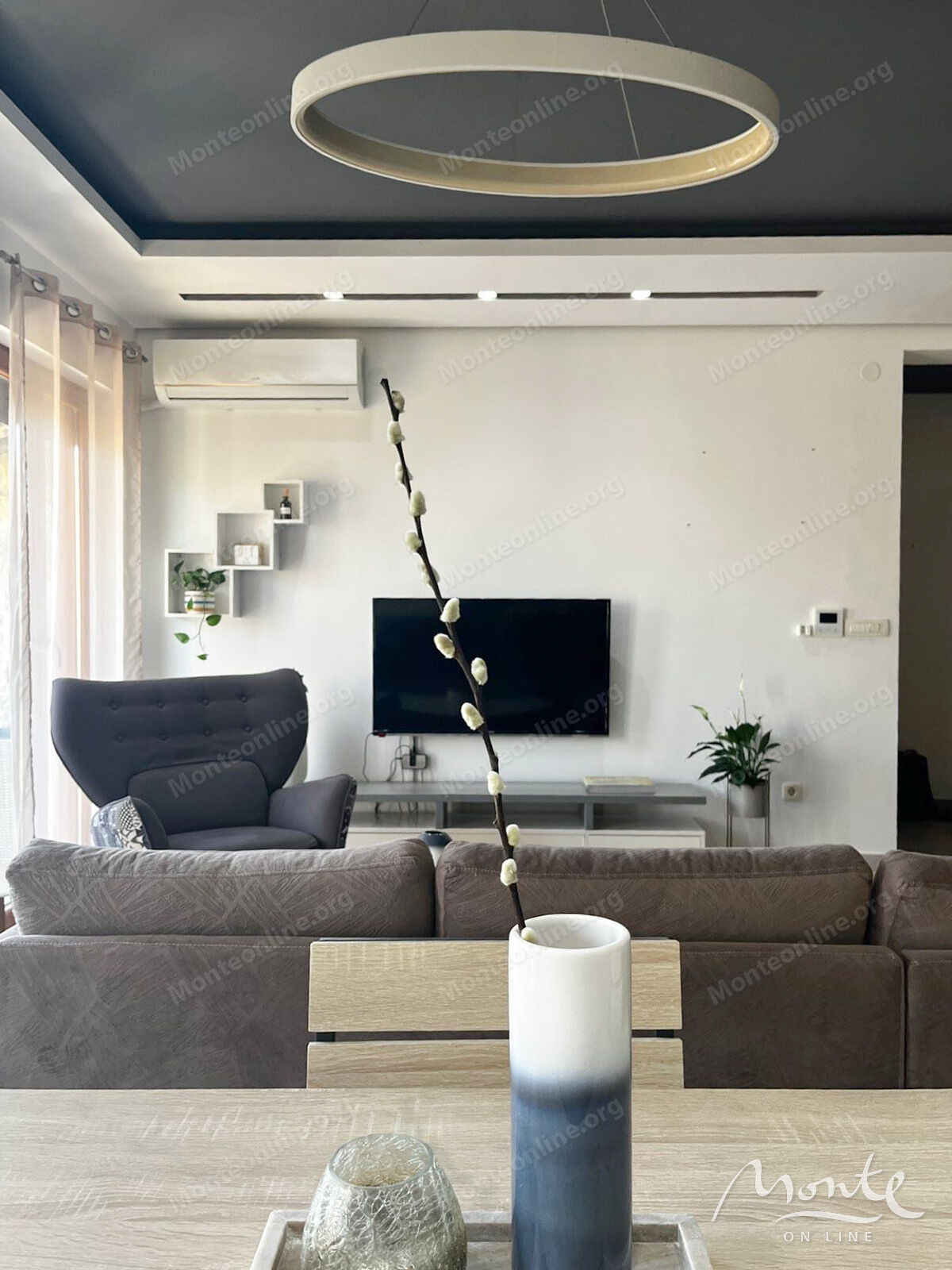 Na prodaju savremeni stan sa 1 spavaćom sobom površine 54 m² u stambenom kompleksu sa bazenom u letovalištu Petrovac, Budvanska rivijera. Osnovne karakteristike: • Površina: 54 m². • Sprat: prvi. • Raspored: prostrani dnevni boravak sa izlazom na terasu, kuhinja, spavaća soba, kupatilo, hodnik. • Potpuno namešten i opremljen tehnikom, stan je spreman za useljenje odmah. Prednosti kompleksa: Kompleks je izgrađen od kvalitetnih materijala, ima uređenu teritoriju i bazen, dostupan samo stanarima. To stvara atmosferu udobnosti, komfora i sigurnosti. Lokacija: Petrovac - slikovito letovalište, poznato po svojim plažama sa mekim peskom, kristalno čistim morem i borovim šumama. U pešačkoj udaljenosti nalaze se prodavnice, kafići, restorani i šetališna obala. Investicioni potencijal: Stan je idealan kako za celogodišnje stanovanje, tako i za izdavanje. U sezoni, izdavanje donosi visok prihod zahvaljujući velikom turističkom toku. Idealno za: • Odmor na moru u sopstvenim apartmanima. • Profitabilnu investiciju sa brzim povraćajem. • Miran porodični život u jednom od najboljih kutaka Crne Gore.
