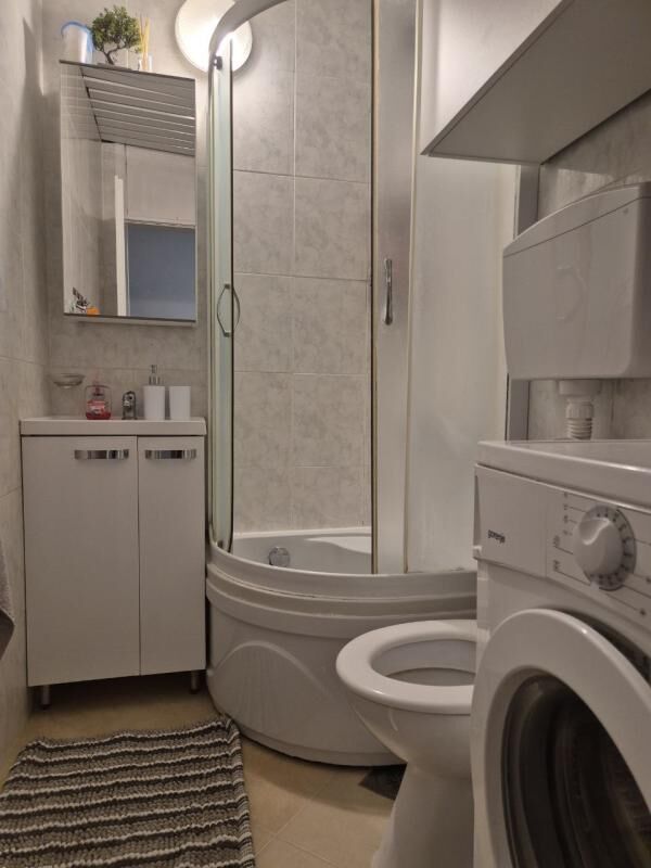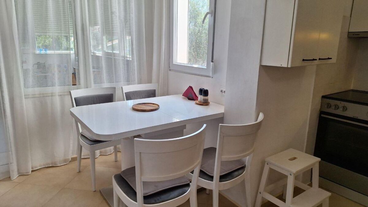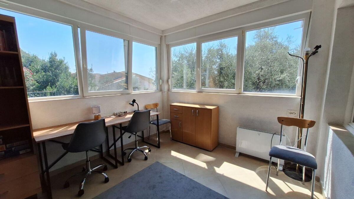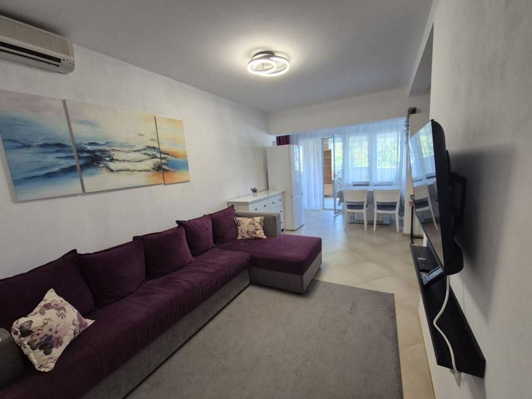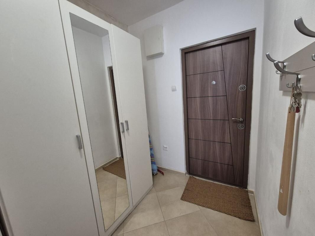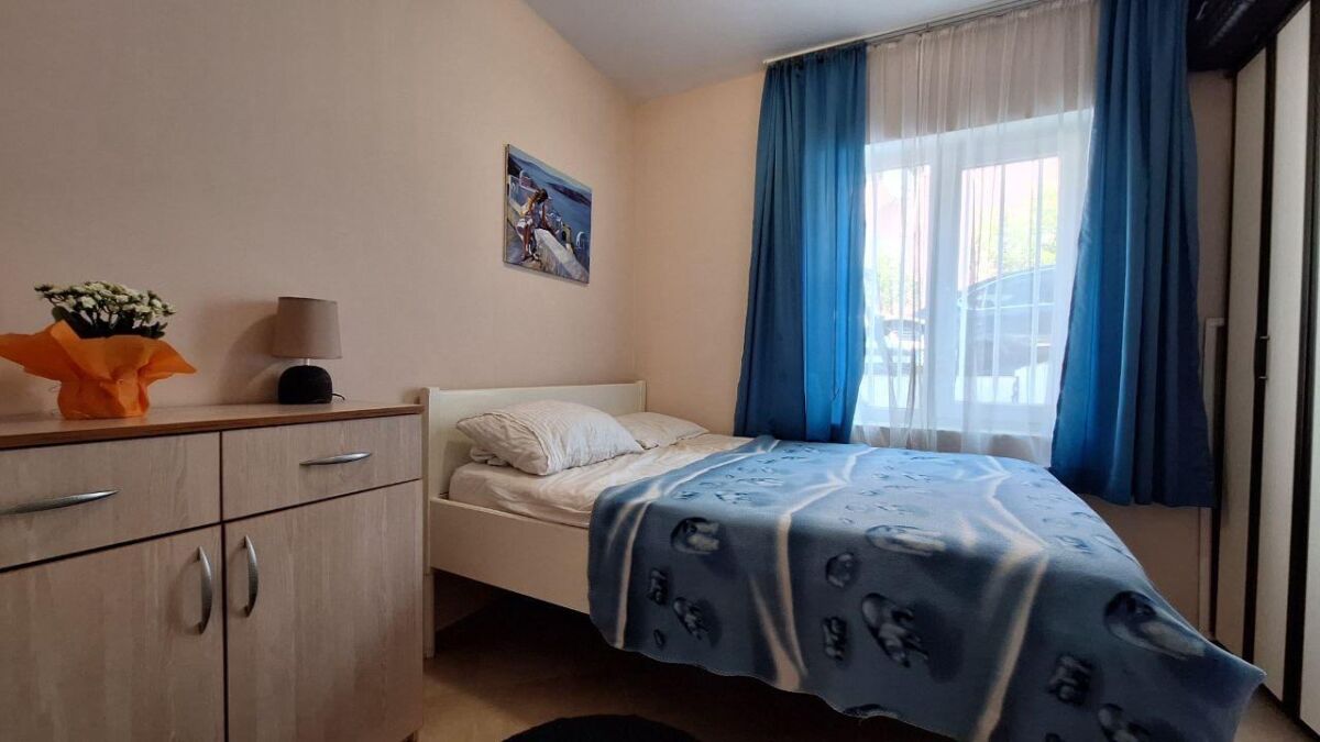 Udoban stan sa 2 spavaće sobe nalazi se na 1. crnogorskom spratu (2. sprat) u četvorospratnoj zgradi. Praktičan hodnik sa ormarom za odlaganje stvari, dnevna soba sa velikim rasklopivim kaučem i klima uređajem, nova kuhinja sa mašinom za pranje sudova, garderober ili radna zona, jedna spavaća soba sa bračnim krevetom i ormarom, druga spavaća soba sa krevetom na sprat, radnim stolom i ormarom. Pogled na mirno zeleno dvorište i mali pogled na more. Ukupna površina 60m2 (37 m2 + zatvorena terasa, preuređena u posebnu spavaću sobu). Udaljenost do mora sa peščanom plažom - 650 metara. Do autobuske stanice 2 minuta pešice. Prodavnice, restorani, kafići, pekare - na 5-7 minuta pešice. Zatvoreno zeleno dvorište sa prostorom za odmor. Javni parking pored zgrade (mesta uvek ima). Dobar potencijal za iznajmljivanje.