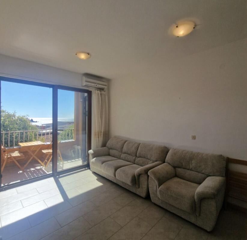 Prostrana i svetla stan površine 57 m², smešten u mirnom području pored mora. Sa terase se pruža prelep panoramski pogled na more. Garaža je uključena u cenu. Ostava. Raspored: Kuhinja Dnevna soba Dve spavaće sobe Kupatilo Terasa sa pogledom na more Stan je idealan za stalno stanovanje ili kao investicija za izdavanje.
