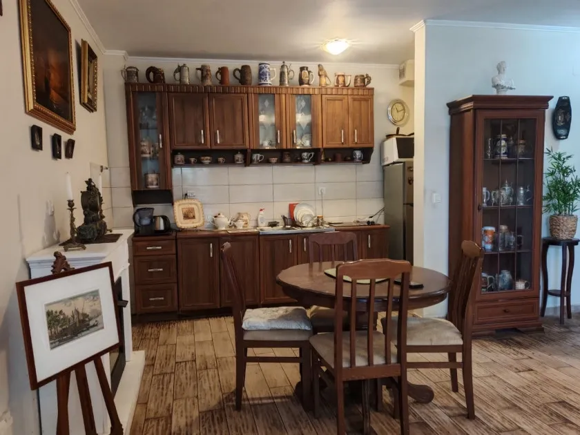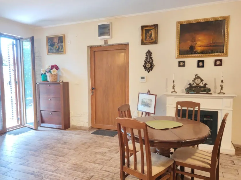 Petrovac na prodaju #7591. Jedinstven stan sa privatnim dvorištem i baštom u Petrovcu. Smešten u visokokvalitetnom stambenom kompleksu sa bazenom okruženim maslinjacima, stan je površine 67 m², sa dvorištem od 75 m². Stan zauzima ceo sprat, stvarajući osećaj života u sopstvenom domu. Poseban ulaz sa ulice. Raspored stana uključuje dnevnu sobu sa kaminom, kuhinju, dve spavaće sobe i dva kupatila. Panoramski prozori gledaju na dvorište i omogućavaju pristup iz svake sobe. Stan se prodaje namešten. Dvorište je prijatno uređeno i zasađeno cvećem i drvećem, a sadrži i funkcionalnu fontanu, prostor za roštilj, paviljon i prostor za opuštanje sa ljuljaškom. Kompleks nudi parking za stanare. Čista dokumenta i prihvata sve oblike plaćanja, uključujući i ruski.