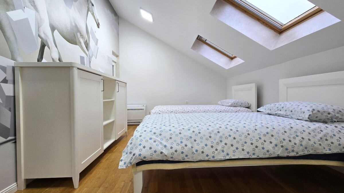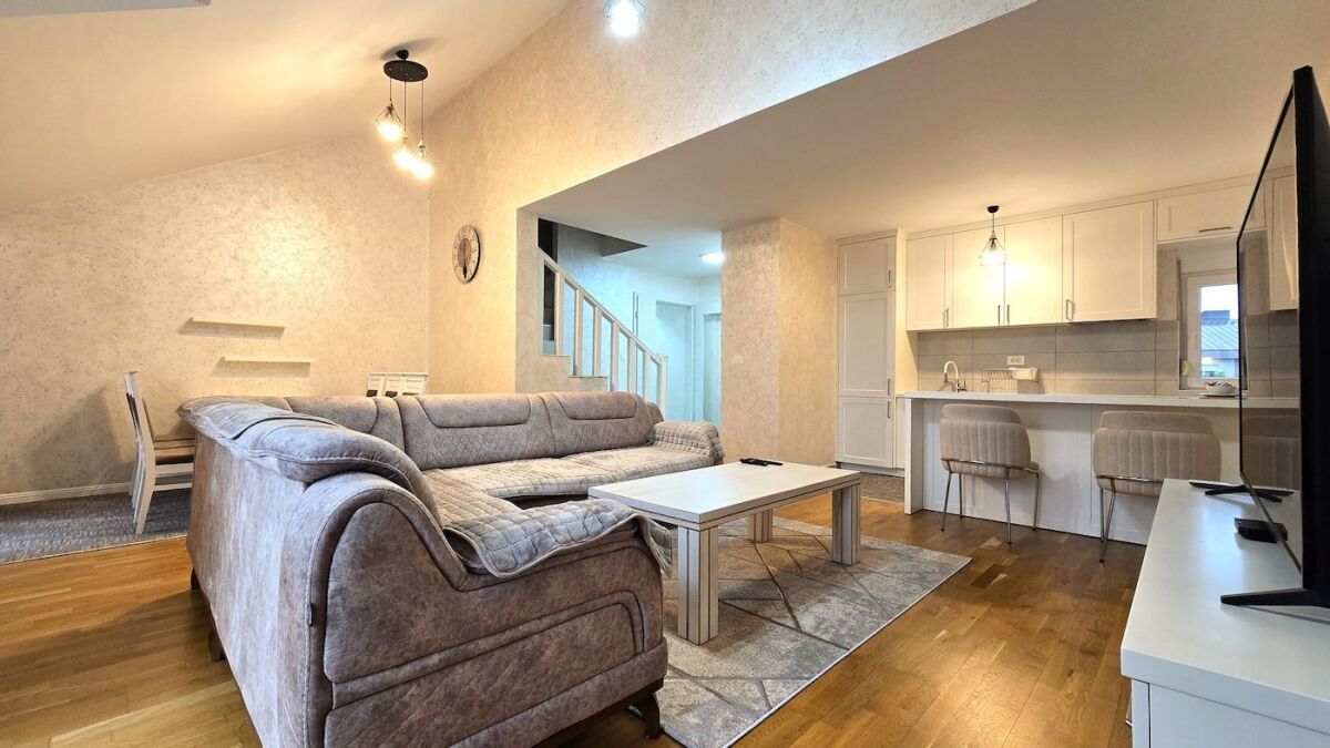 Trosoban namešten duplex na prodaju, 110m2 na podnožju brda Ljubović u Podgorici. Stan se nalazi na 5. spratu novogradnje, Cijevna komerc. Zgrada ima lift, uređen ulaz. Orijentisan jugozapadno. Struktura donjeg nivoa: ulazni hol, prostrana dnevna soba sa trpezarijom i kuhinjom, terasa, spavaća soba i kupatilo. Struktura gornjeg nivoa: dve spavaće sobe i kupatilo. Stan ima odličnu strukturu, potpuno opremljen novim nameštajem i aparatima. Ima multisplit sistem klimatizacije. Postoji mogućnost kupovine garažnog mesta. Nalazi se iza Kineske ambasade, u neposrednoj blizini brda Ljubović, blizu osnovne škole, vrtića, hipermarketa i drugih sadržaja.