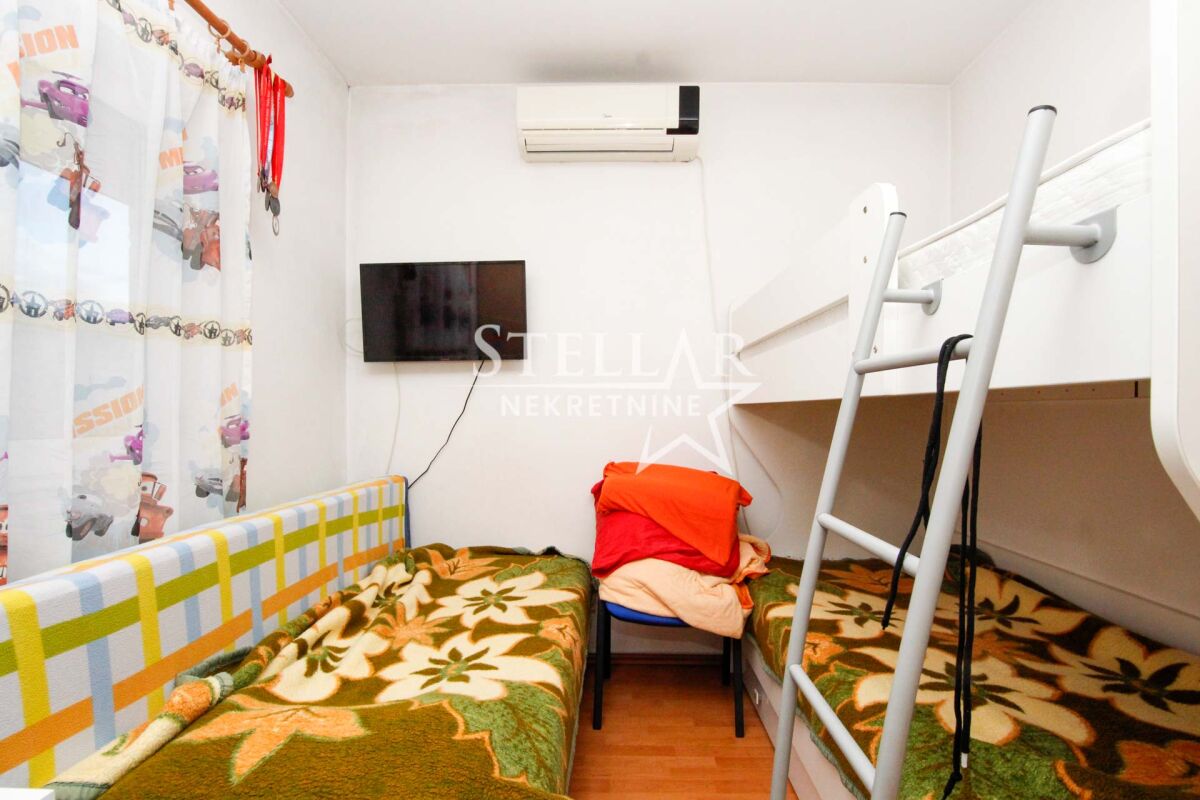 Prodaje se jednosoban stan na Zabjelu. Površina stana je 41m2 i nalazi se na prizemlju manje zgrade. Sa ulaznih vrata se pristupa dnevnom boravku kuhinji i trpezariji, hodnik vodi do spavaće sobe i kupatila. Iz dnevne sobe je balkon pretvoren u ostavu ili ljetnju kuhinju ali i dalje je balkon i ima tu funkciju. Stan se prodaje namješten ili prazan. Stan se nalazi u zgradi završenoj 2007.godine, moguća su sitnija ulaganja, ali nema hitnih intervencija ili oštećenja an stanu. Lokacija je povoljna za nekoga ko cijeni mir, privatnost i potpuno odsustvo saobraćaja u blizini doma. Parking je ispred zgrade. ID nekretnine 703 +382 69 618 445