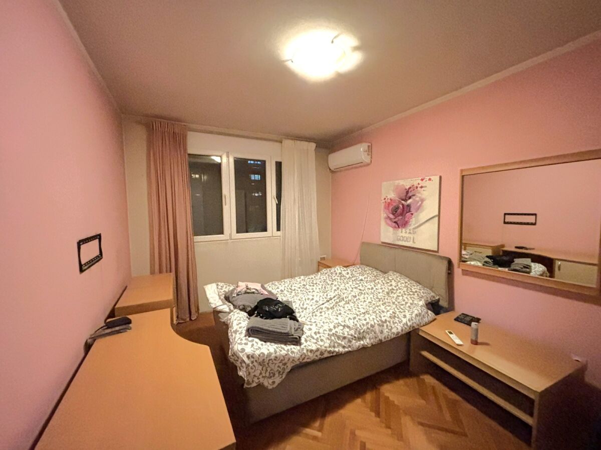 Stan se nalazi na 2. spratu zgrade u odličnoj lokaciji, Bulevar Svetog Petra Cetinjskog. Udoban jednosoban stan, registrovan kao dvosoban. Zgrada ima lift. Struktura: dnevna soba, terasa, odvojena kuhinja sa trpezarijom, hodnik, spavaća soba, kupatilo i ostava. Stan ne zahteva ulaganja. Prodaje se namešten. Orijentisan je na sever.