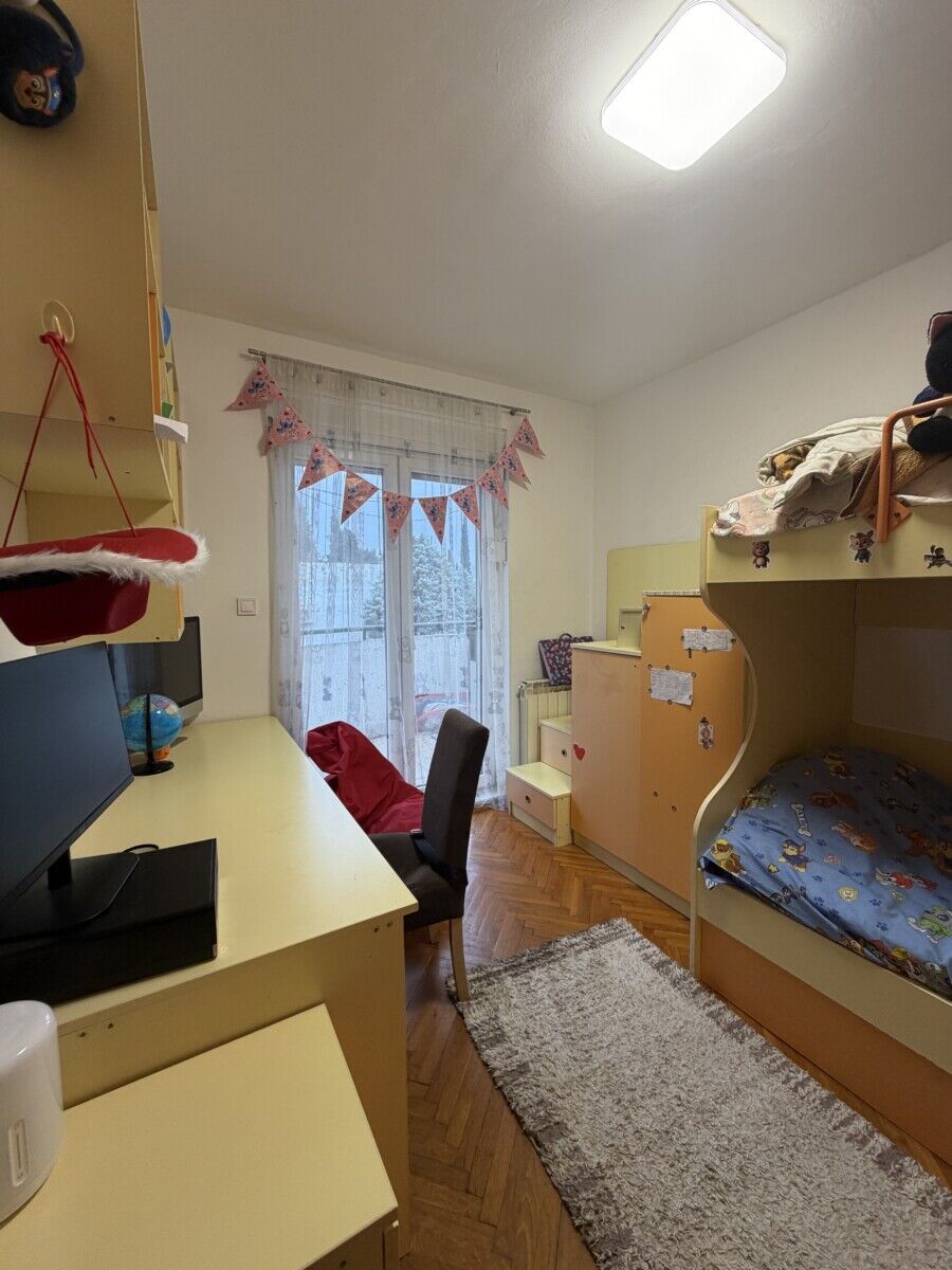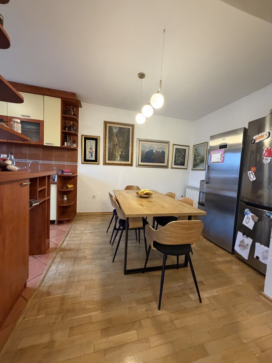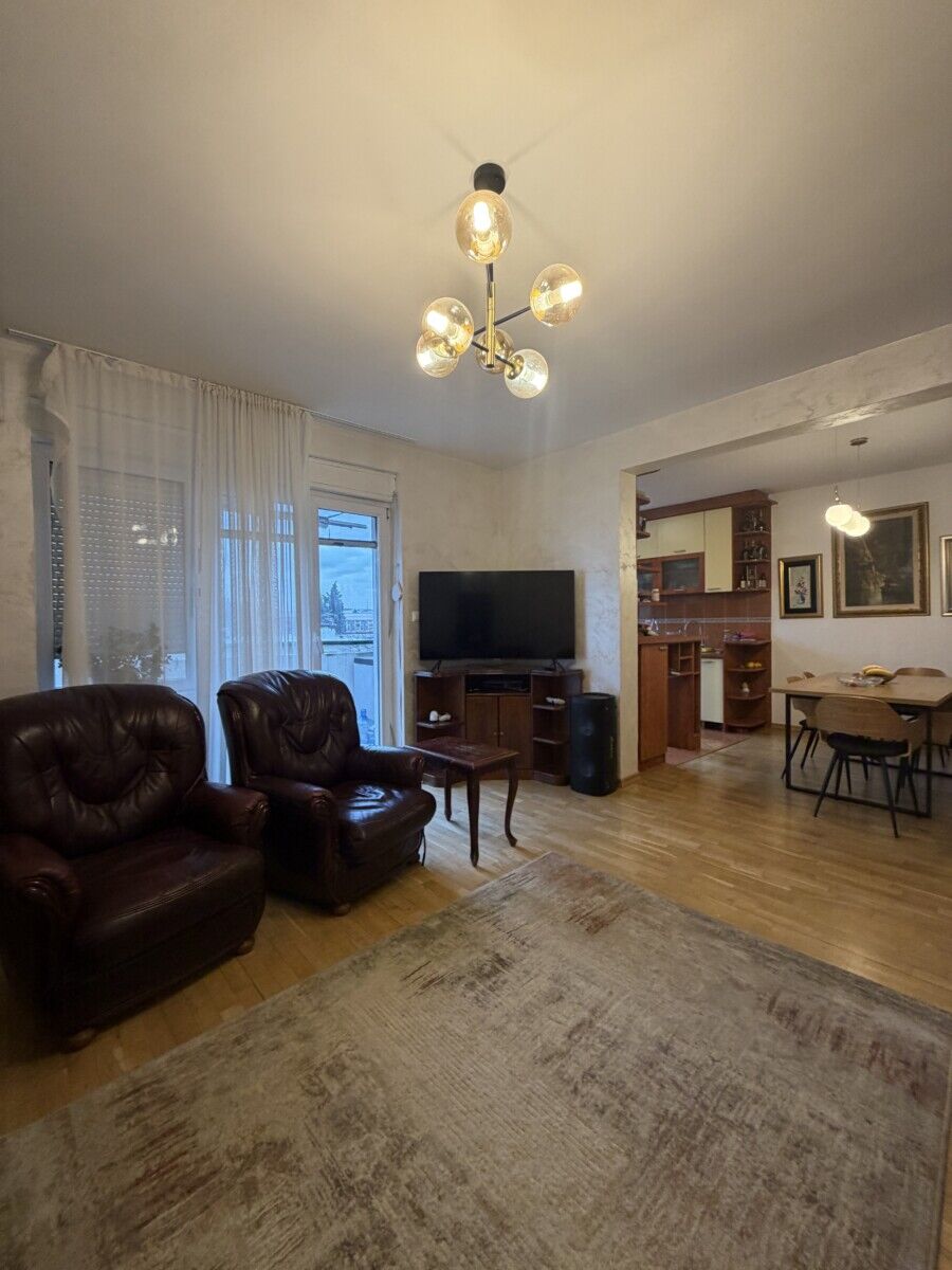 Prodaje se trosoban stan preko Morače, površine 90 m², uredne dokumentacije. Stan se nalazi na trećem spratu, koji nije posljednji. Uz stan dolazi obezbijeđeno parking mjesto. Stan je namješten, ima kupatilo, WC, špajz, parno grijanje i dva balkona/terase. Zgrada nema lift. Cijena iznosi 226.600 EUR.