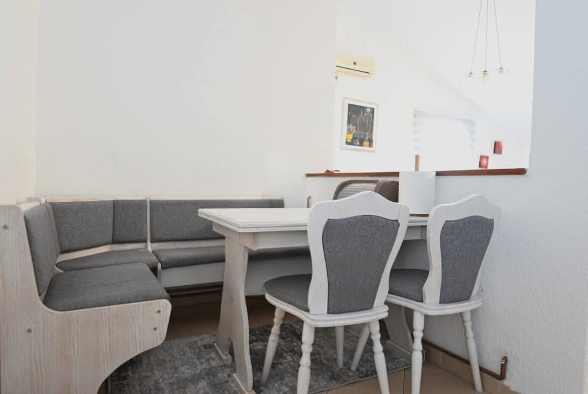 Lepo namešten dvosoban stan od 103m2 (90m2 registrovano) je na prodaju na kružnom toku, preko puta Doma zdravlja u Donjoj Gorici, Podgorica. Stan se nalazi na drugom spratu manje stambene zgrade. Veliki dnevni boravak, odvojena trpezarija sa sankom, kuhinja, kupatilo, velika zastakljena terasa u dva dela. Jedan deo je letnja kuhinja sa elementima, drugi je terasa sa pločicama i nameštajem. Gore se nalaze dve manje spavaće sobe, predsoblje, hodnik i toalet. Centralno grejanje. Parking je dostupan ispred zgrade. Vlasništvo 1/1.