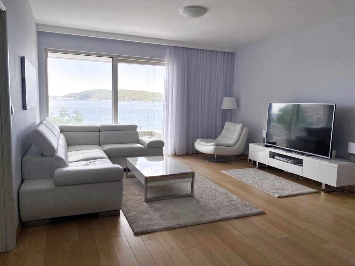 Квартира с 3 спальнями на самой линии моря в Рафаиловичи. Площадь - 149 м2 Планировка: коридор, гостиная, кухня, 3 спальни, 3 ванные комнаты, 2 террасы. Паркинг в подземном гараже.