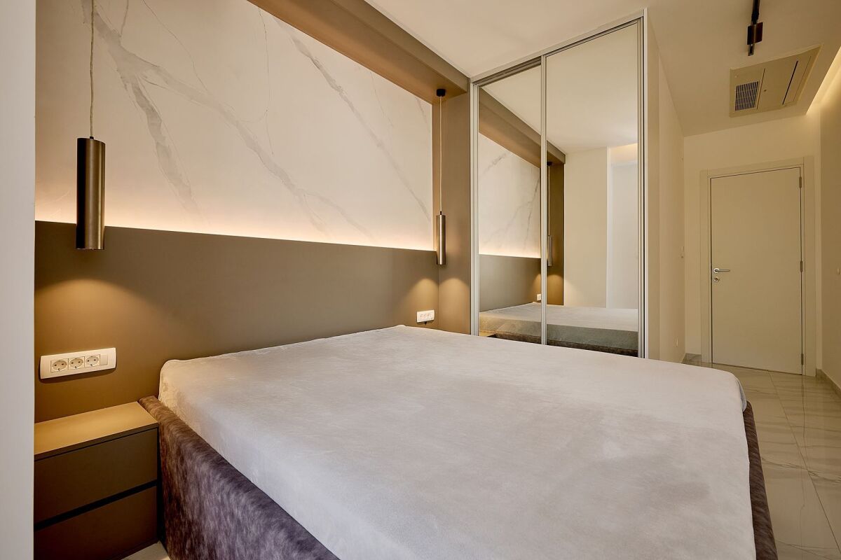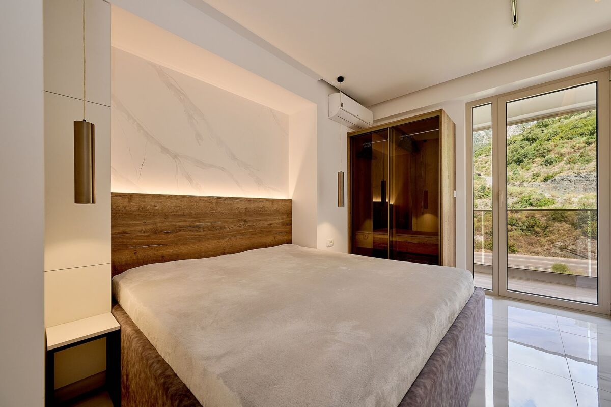 Ekskluzivan stan s panoramskim pogledom na more, Rafailovici Na prodaju je prelep ekskluzivni stan sa zadivljujućim panoramskim pogledom na Jadransko more, smješten na jednoj od najatraktivnijih lokacija Budvanske rivijere. Ovaj luksuzni stan ukupne površine 90 m² nudi savršen spoj modernog dizajna i visokokvalitetnih završnih radova, čineći ga idealnim mestom za one koji žele uživati u vrhunskom komforu i estetskom užitku. Stan se nalazi na 7. spratu devetospratne zgrade, a prostrani dnevni boravak u svetlim tonovima savršeno je usklađen s elegantnim namještajem i dizajnerskim elementima dekora. Trpezarija, izrađena od prirodnog drveta, organski se uklapa u prostor, stvarajući savršen ambijent za prijem gostiju. Kuhinja je opremljena visokokvalitetnim ugradnim ormarićima i funkcionalnim kuhinjskim ostrvom, zadovoljavajući sve savremene zahtjeve za praktičnost i stil. Stan se sastoji od dve spavaće sobe, dve kupatila i prostrane terase s panoramskim pogledom. Zgrada ima podzemnu garažu, a stan dolazi s jednim parking mestom, što pruža dodatnu sigurnost i udobnost. Zgrada je izgrađena od strane renomiranog investitora, poznatog po pouzdanosti i visokom kvalitetu radova, dok upravljačka kompanija osigurava besprekorno održavanje zgrade i okolnog prostora. Lokacija stana je izuzetno atraktivna – do popularne plaže Kamenovo možete doći za samo 5 minuta pešice, dok su vrhunski restorani, kafići i šetalište u neposrednoj blizini. Ova lokacija savršeno kombinuje mirno okruženje s blizinom svih potrebnih sadržaja i turističkih atrakcija. Stan je savršen izbor za one koji žele luksuzan život uz najlepši pogled na more.