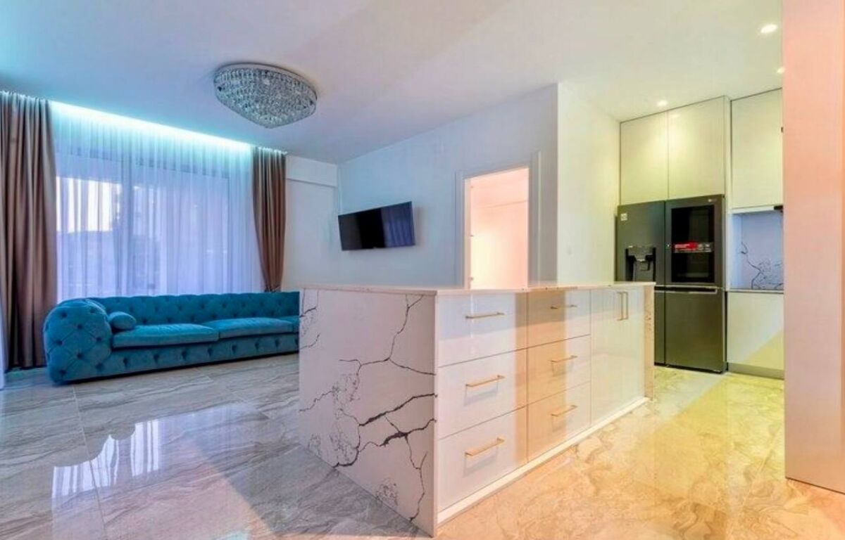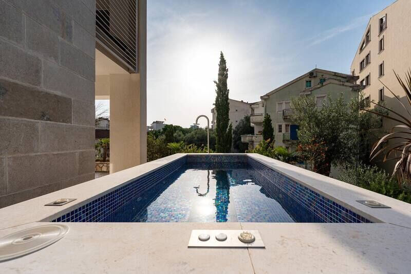 ID BD-476/09 Luksuzni stan sa jednom spavaćom sobom i prostranom terasom — Budva, Rafailovići Površina: 56 m² + terasa 80 m² Lokacija: Budva, Rafailovići, kompleks „Aura“ — 200 m od mora Raspored: Prostrana dnevna soba sa otvorenim rasporedom Kuhinja i trpezarija 1 spavaća soba 1 kupatilo + poseban toalet Prostrana terasa 80 m², opremljena za odmor Karakteristike: Masažni đakuzi za 8 osoba, tuš i kada na terasi 2 parking mesta u podzemnoj garaži Sistem grejanja i klimatizacije „split“ Podno grejanje Potpuno namešten i opremljen modernom tehnikom Profesionalna usluga održavanja zgrade Recepcija, kafić i tri lifta Podzemna garaža na tri nivoa Cena: 252 000 €