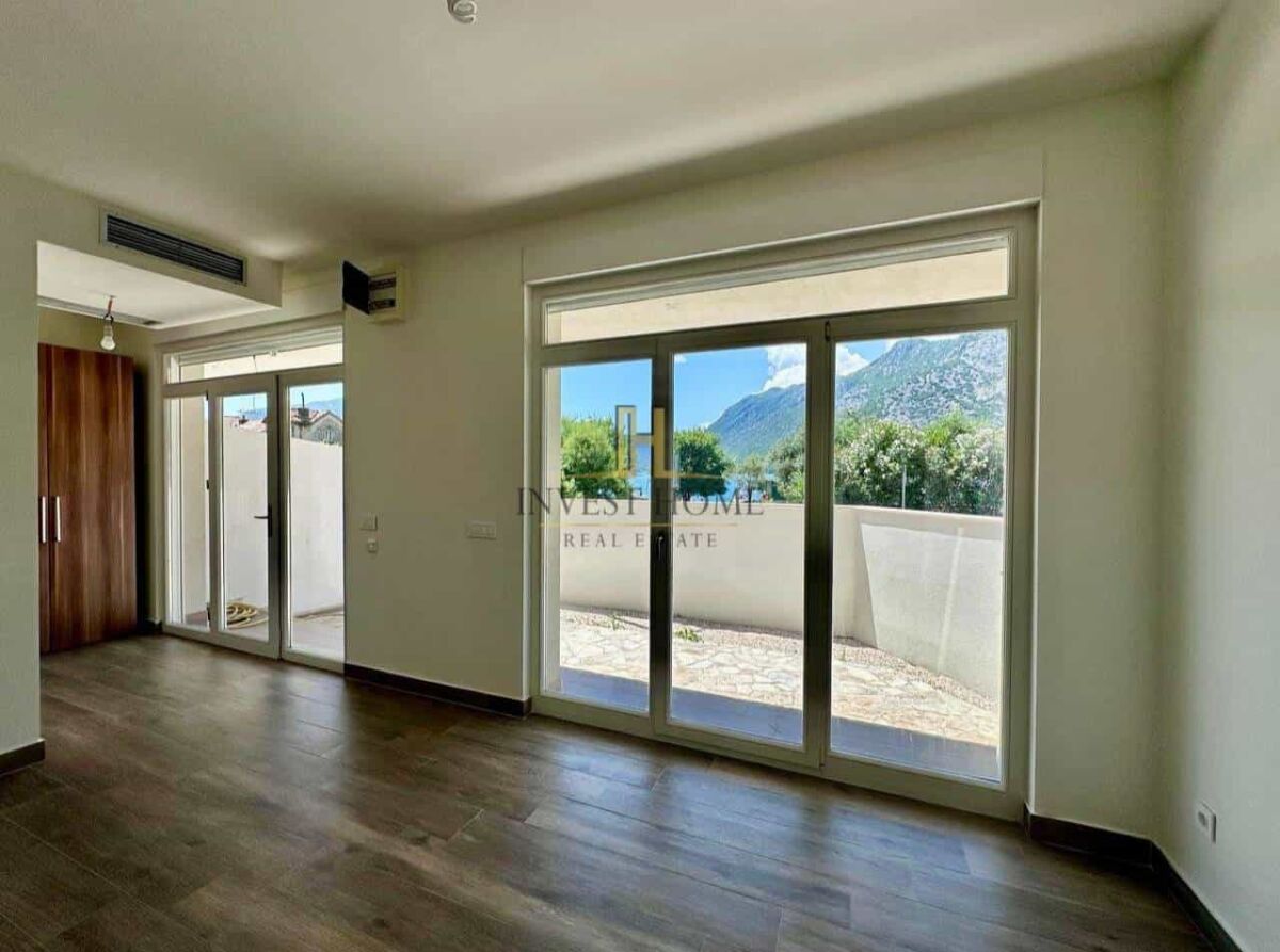 Za prodaju jednosoban stan u Risnu, površine 50m2. Nalazi se na odličnoj lokaciji, 20m udaljen od mora. Prostorije su odličnog rasporeda sa sledećom strukturom: Dnevni boravak sa kuhinjom, hodnik, spavaća soba, kuaptilo i wc. Posjeduje pakring mjesto iza rampe. U cijenu je uključeno i dvorište od 30m2. Iz dnevne sobe se pruža prelijep pogled na more.