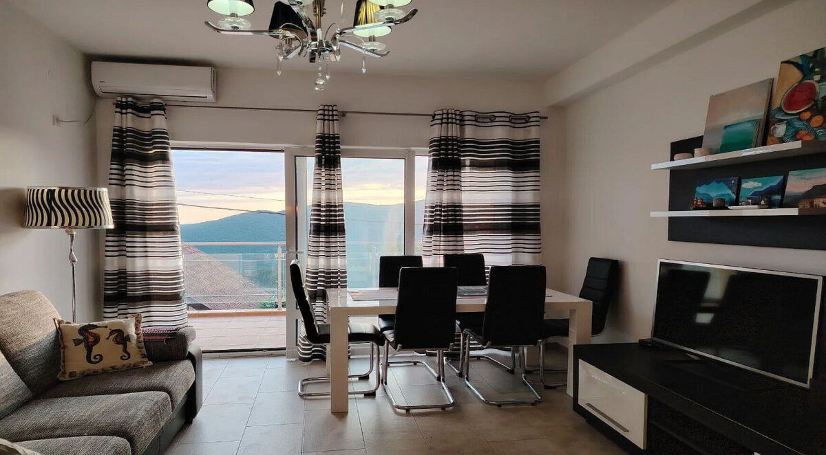 A spacious apartment with a stunning sea view is for sale in Seoce, a suburb of Budva. The center of Budva is just 3 km away, and one of the best beaches on the Budva Riviera, Jaz, is 2 km away. The apartment is 97 square meters and located on the second floor of a four-story building. The layout includes a hallway, a living room with a kitchen area, two bedrooms, two bathrooms, and a large terrace with panoramic sea views. The apartment is fully furnished and equipped with appliances. The building has its own parking space for residents. Storage spaces are also available on the ground floor. The documents are ready for sale. Payment can be made in Russia. This is an excellent property for those who prefer to live in nature, yet still be close to the city and all its amenities.