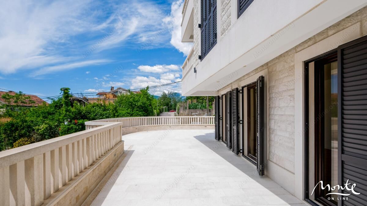 Predstavljamo Vašoj pažnji nekoliko prostranih stanova u novoj premium zgradi u samom centru Tivta - samo par minuta hoda od škole Knightsbridge i Porto-Montenegro. #2 Stan sa 1 spavaćom sobom (visoko prizemlje), ugradnom kuhinjom, nenamešten. 44 m2 plus terasa 5 m2 i 60 m2. Ukupna površina 109 m2. Cena: 306.000 evra plus garažno mesto 18.000 evra. #3 Stan sa 1 spavaćom sobom (visoko prizemlje; nenamešten), ugradnom kuhinjom. 48,4 m2 plus terasa 17,6 m2 Ukupna površina 66 m2 Cena: 230.000 evra plus garažno mesto 18.000 evra. #4 Namješten stan sa 2 spavaće sobe, 1. sprat. 2 kupatila, kompletno namještena. 71,6 m2 plus 4,9 m2. Ukupna površina 76,5 m2. Cena: 320.000 evra plus garažno mesto 18.000 evra. #5 Stan sa 1 spavaćom sobom, 1. sprat, ugradna kuhinja, nenamešten. 46 m2 plus terasa 4 m2 Ukupna površina 50 m2. Cena: 200.000 evra plus garažno mesto 18.000 evra. #8 Stan sa 2 spavaće sobe, 2 sprat, nenamešten. 2 kupatila, ugradna kuhinja. 71,6 m2 plus 4,9 m2. Ukupna površina 76,5 m2. Cena: 311.000 evra plus garažno mesto 18.000 evra. #9 Stan sa 1 spavaćom sobom, 2. sprat, ugradna kuhinja, nenamešten. 46 m2 plus terasa 4 m2 Ukupna površina 50 m2. Cena: 205.000 evra plus garažno mesto 18.000 evra.