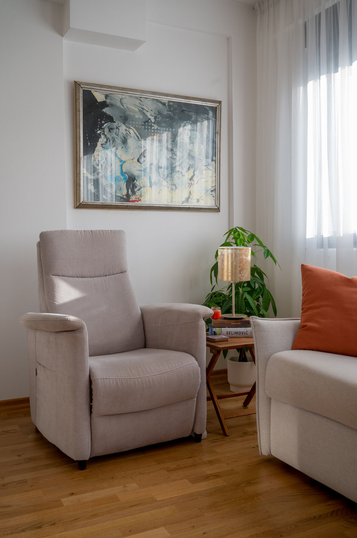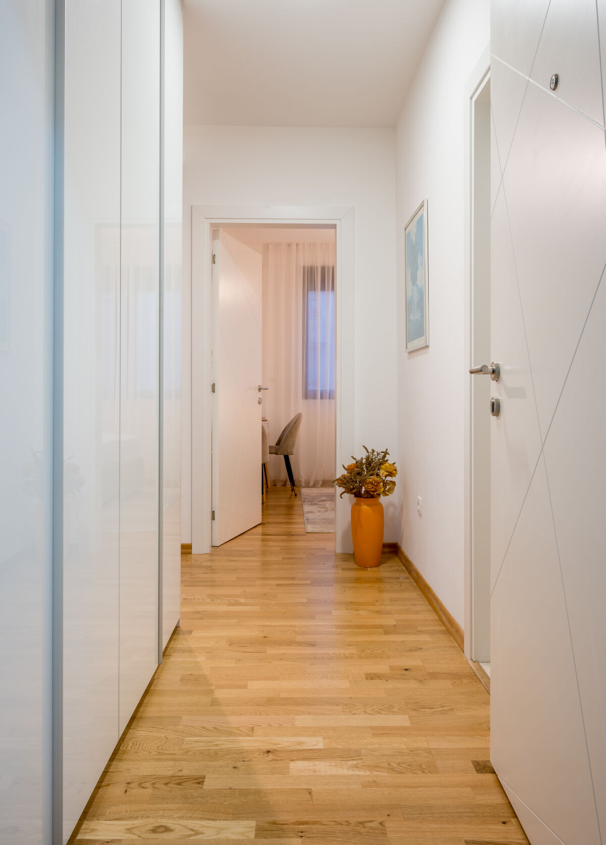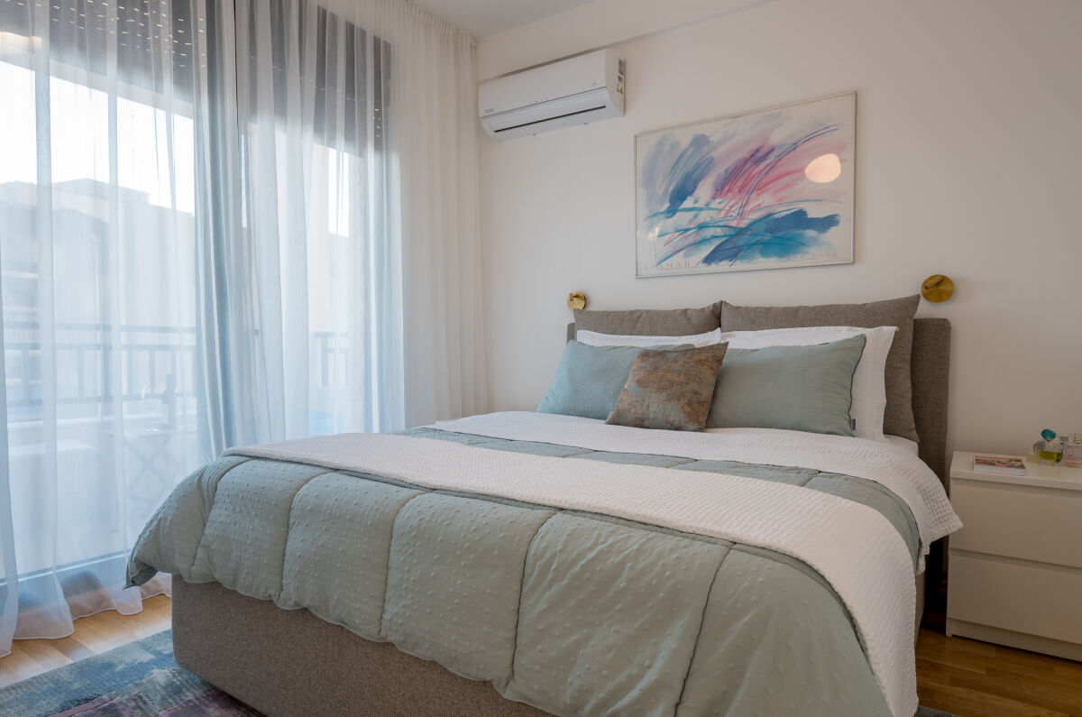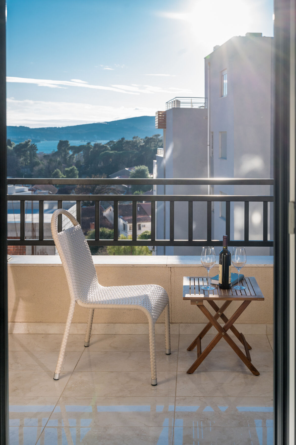 U mirnom i zelenom području Pod Kuk, nedaleko od centra Tivta i prestižnog kompleksa Porto Montenegro, nudi se stiljski i udoban dvosoban stan. Stan se nalazi u novom stambenom kompleksu sa kvalitetnom završnom obradom i promišljenim modernim dizajnom. Površina stana je 63 m². Veliki panoramski prozori ispunjavaju sobe prirodnom svetlošću i otvaraju izlaz na prostranu terasu s pogledom na more i planine, obezbeđujući harmoniju između enterijera i okruženja. Obe spavaće sobe su uređene u neutralnim tonovima, opremljene kvalitetnim nameštajem i prostranim ormarima. Kupatilo je urađeno u završnoj obradi "pod mramor" i opremljeno modernom tuš kabinom walk-in. Posebna vešeraj zona sa mašinom za pranje i sušenje veša čini prostor maksimalno funkcionalnim. Stan je potpuno namešten i spreman za useljenje. U cenu je uključeno mesto u podzemnoj garaži (12 m²). U zgradi je postavljen lift, koji obezbeđuje komfor i udobnost stanara. Cena: 349 000 €
