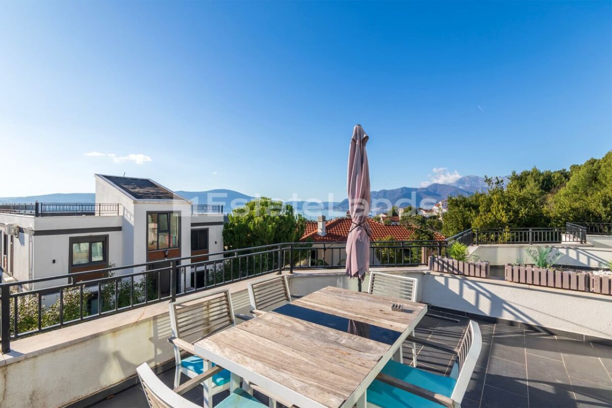 Moderan dvosoban stan koji se nalazi na prvom spratu savremene stambene zgrade sa garažnim parkingom, liftom i bazenom. Stan ima dobro osmišljen raspored, puno prirodnog svetla i prodaje se potpuno namešten — spreman za trenutnu upotrebu. Stambeni kompleks se nalazi u mirnom i slikovitom delu Kave, pružajući privatnost, sigurnost i atraktivno okruženje. Sva neophodna infrastruktura je udaljena samo 2 minuta vožnje, uključujući supermarkete, pijacu, kafiće, plaže, glavnu autobusku stanicu i šetalište uz more. Porto Montenegro je udaljen samo 2 km. 📐 Površina: 49 m² + terasa od 18 m² 🛏 Raspored: • kuhinja otvorenog tipa • dnevna soba sa izlazom na terasu • 2 spavaće sobe • kupatilo • prostrana terasa • hodnik 🏢 Sadržaji i karakteristike: • klima uređaj • potpuno opremljena kuhinja (šporet, rerna, frižider, mašina za sudove) • lift • bazen • pogled na more
