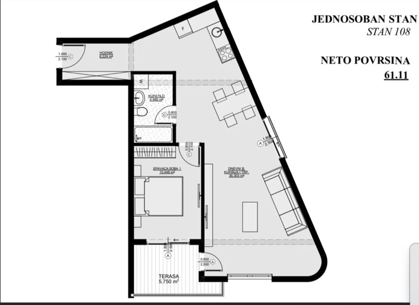 Na prodaju jednosoban komforan stan u Ulcinju, u blizini Castelane Površina 61.10 m2 Stan se sastoji iz dnevnog boravka sa kuhinjom, jedne spavaće sobe, kupatila i terase. Objekat se nalazi na samo 5 minuti hoda od osnovne I srednje škole, takodje u neposrednoj blizini je Okov Centar, marketi Sars i Jadran. Cijena 1650€/m2 +38269744016