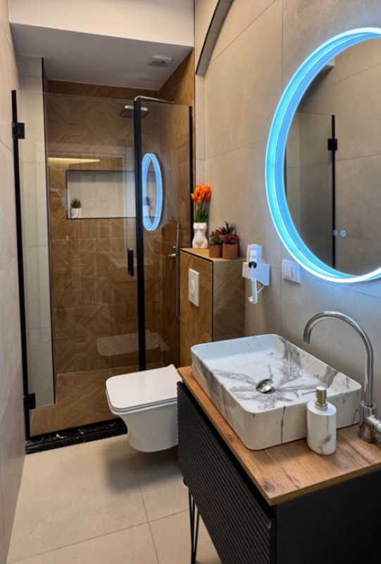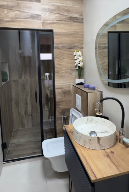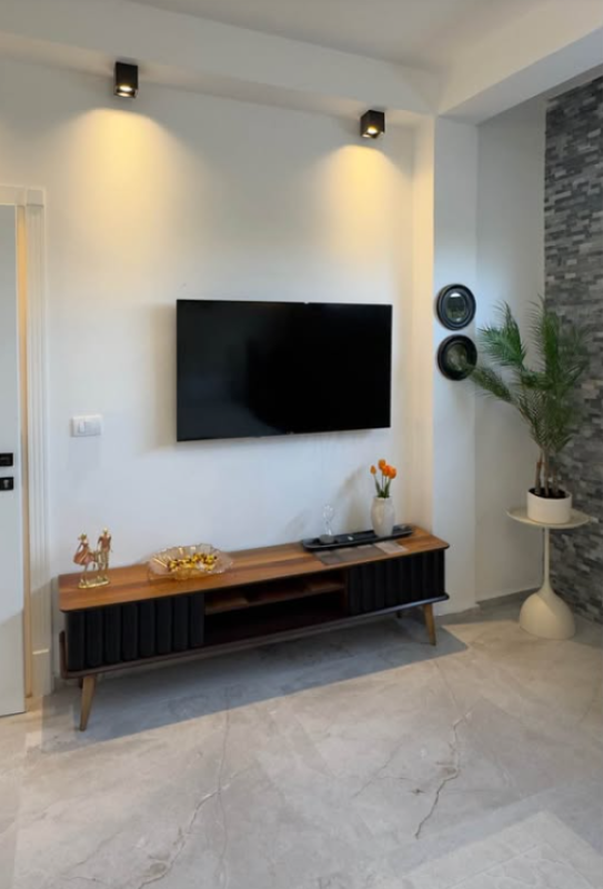 Luksuzan stan površine 63m2 sa 2 spavaće sobe, 2 kupatila u novoj modernoj zgradi sa liftom. Stan je potpuno opremljen svim potrebnim: mašina za pranje veša, mašina za pranje sudova, 3 klima uređaja, neki pribor sa posuđem, posteljina, jastuci, tepihe. Parking za sve stanare zgrade. Do mora 800m, u blizini Velika plaža. Zgrada je nova, useljena 2025. godine.