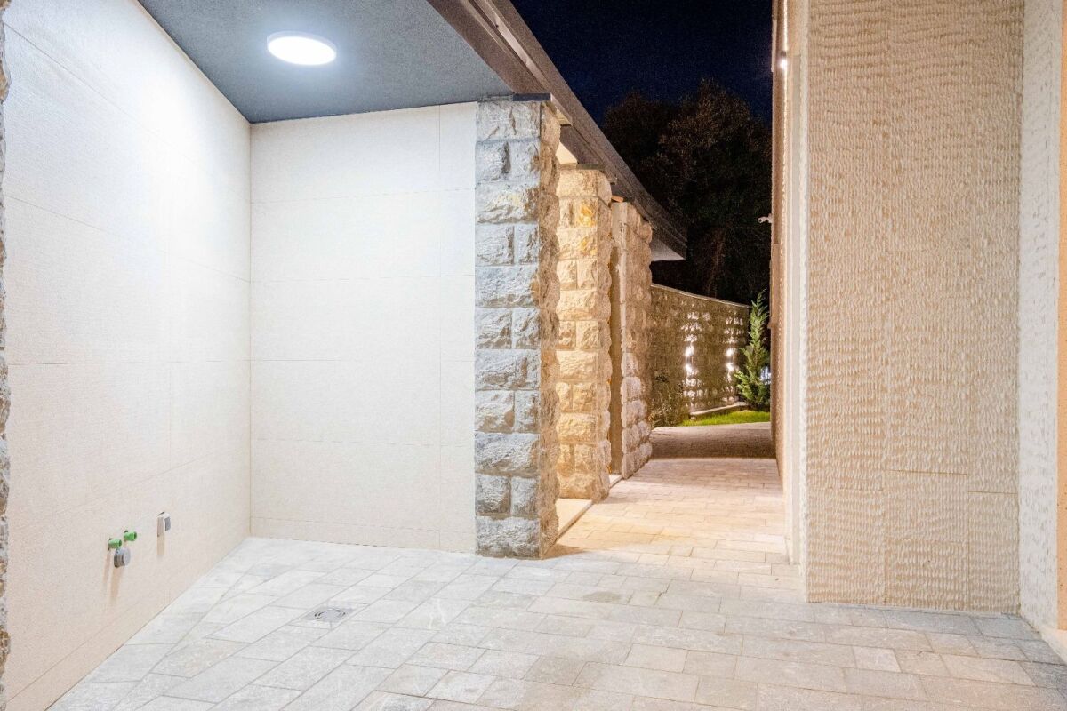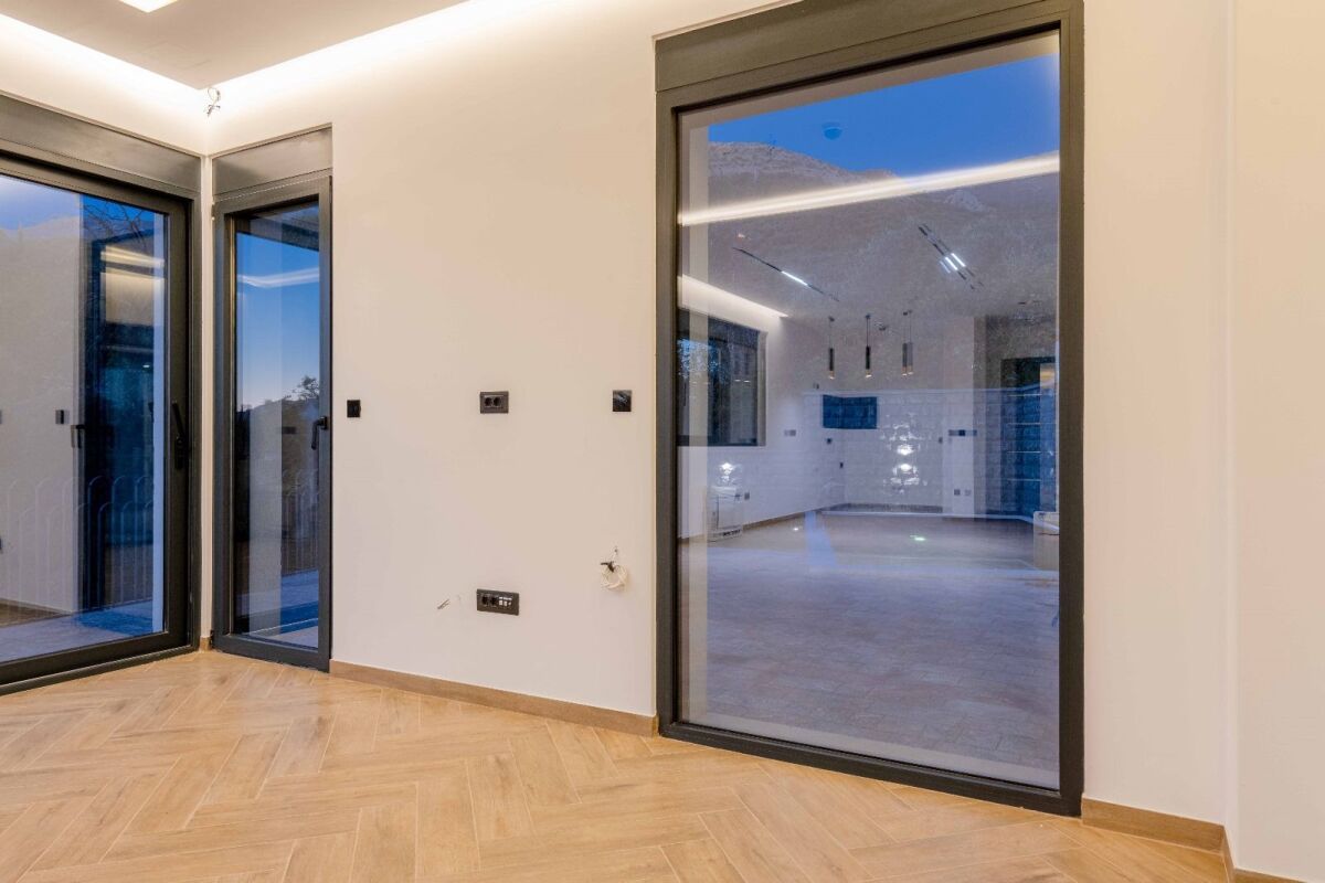 Nekretnine, Crna Gora Predstavljamo vam izuzetnu priliku za kupovinu luksuzne vile u jednom od najprestižnijih delova crnogorske obale – Kamenovu. Ova vila, sa površinom od 240 m², smeštena je na prostranom placu od 380 m² i nalazi se u ekskluzivnoj zoni ispod magistrale, na samo minut hoda od plaže. Ova nekretnina savršeno kombinuje moderan dizajn i vrhunski komfor, nudeći idealan prostor za odmor ili trajni boravak. Struktura i raspored prostorija: Suteren: U suterenu vile nalaze se dva garažna mesta, tehnička prostorija, vešeraj, dve saune, teretana, jacuzzi i toalet. Ovaj nivo je osmišljen tako da pruži maksimalnu udobnost i relaksaciju vlasnicima i njihovim gostima. Prizemlje: Prizemlje vile odiše prostranošću i funkcionalnošću. U njemu se nalazi elegantna dnevna soba spojena sa trpezarijom, moderna kuhinja, ostava i gostinski toalet. Veliki prozori i staklene površine omogućavaju obilje prirodne svetlosti, dok otvoren plan prostora daje osećaj slobode i povezanosti sa spoljnim ambijentom. Potkrovlje: Potkrovlje vile pruža udoban i miran prostor za odmor sa tri prostrane spavaće sobe i dva moderna kupatila. Sobe su opremljene najkvalitetnijim materijalima. Specifikacije i oprema: Vila se izdvaja vrhunskom gradnjom i pažljivo odabranim materijalima: Bravarija: Prozorima i vratima dominiraju Alumil profili sa specijalnim staklom "četiri godišnja doba" debljine 6-16-8 mm, koje garantuje vrhunsku termoizolaciju.Izolacija: Termoizolacija debljine 10 cm, izolacioni materijali Sika 152, i betonska konstrukcija od vodonepropusnog betona.Tehnologija: Vila je opremljena smart sistemom sa daljinskom kontrolom unutar i van objekta, sistemima za protivpožarnu zaštitu, protivprovalnu i protivpoplavnu zaštitu, kao i video nadzorom sa osam kamera.Instalacije: Rehau vertikalne cevi koje osiguravaju tišinu, podno grejanje koje doprinosi udobnosti tokom hladnijih meseci.Eksterijer i interijer: Fasada obložena kamenom francuskog porekla, parket prve klase i španska keramika. Kupatila su opremljena Grohe ugrađenim elementima i sanitarnim uređajima.Bazen: Privatni bazen dimenzija 4 x 8 m, sa sistemima za filtraciju španskog proizvođača, idealan za letnje uživanje i opuštanje.
