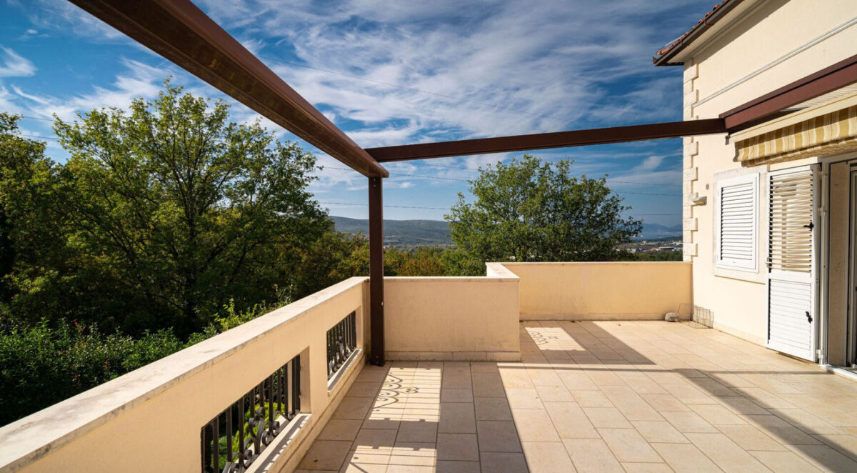 Opis nekretnine: • Godina izgradnje: 2010 • Stambena površina: približno 330 m2 • Površina zemljišta: približno 1800 m2 • Broj spratova: prizemlje + 2 sprata • Broj spavaćih soba: 5 Raspored i karakteristike: • Prostrana dnevna soba • Kuhinja sa trpezarijom • Pet spavaćih soba • Igraonica • Kupatilo • Dve terase i dva balkona • Velika terasa (30 m2) na poslednjem spratu sa pogledom na more • Centralno snabdevanje vodom • Autonomno grejanje (električni bojler) • Podovi: parket i keramičke pločice • Potpuno namešteno • Internet, klima uređaj, kamin/peć Dodatne pogodnosti na nekretnini: • SPA kompleks – 100 m2 (svlačionica, sauna, tuš, toalet, prostorija za opuštanje) • Podrum – 100 m2 • Natkrivena letnja kuhinja – 35 m2 • Garaža – 40 m2 + natkriveno parkiralište – 30 m2 • Bazen – 5 x 10 m (dubina 160-180 cm) • Automatska ulazna vrata • Održavan vrt sa voćkama i ukrasnim biljkama • Dve potpuno opremljene roštilj zone (unutrašnja i spoljašnja) • Podzemni rezervoar za vodu – 17 m3