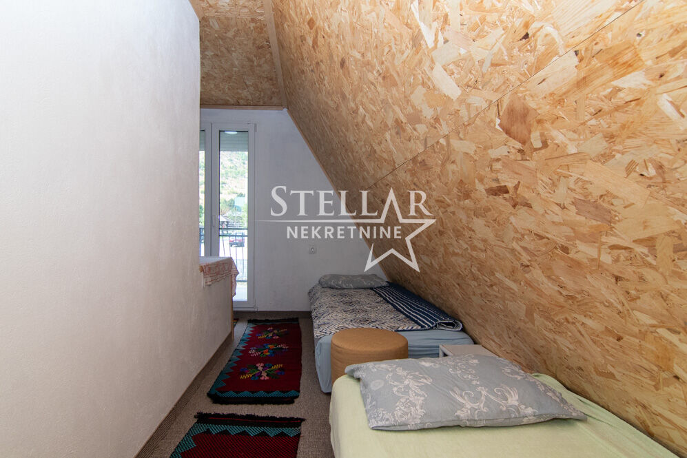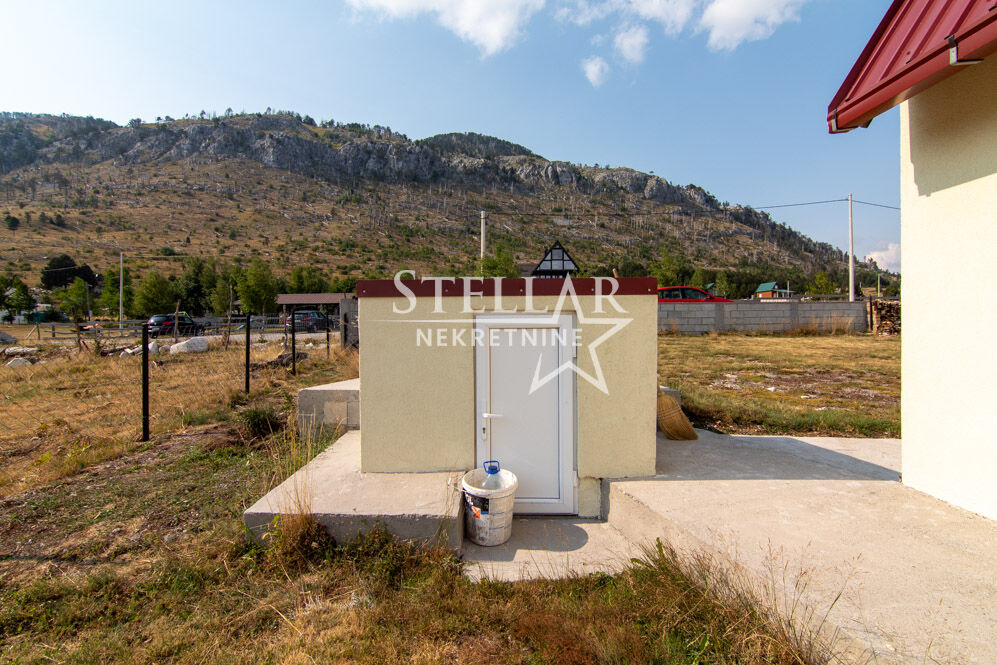 Na prodaju nova kuća na Kučkim Koritima, površine 80m² korisnog prostora, bez uračunatih kosina ispod 150cm, na placu od 600m². Građena od cigle, sa betonskom pločom između prizemlja i sprata, limenim krovom i demit fasadom. U prizemlju se nalazi zatvorena terasa iz dnevne sobe, ostava, hodnik i kupatilo, a na spratu dvije spavaće sobe – jedna sa četiri single kreveta, druga sa dva kauča na razvlačenje u francuski ležaj, svaka sa svojim balkonom. Svaka prostorija ima dnevnu svjetlost, ventilaciju, roletne i škure. Visina plafona je 230cm. Kuća ima struju, bistijernu od 13m³ sa hidroforom, septičku jamu, spoljne reflektore, a izvorska voda je udaljena 300 metara. Kuća je upisana u katastar, građena na državnom zemljištu, a prilaz do kuće će uskoro biti asfaltiran. Dodatno, postoji temelj od 16m2 za ostavu koji je zabilježen na satelitskom snimku. U blizini se nalazi restoran Korita. Kuća je kvalitetno sagrađena, a idealna je za odmor i boravak u prirodi, sa čistim vazduhom i mirnim okruženjem. ID nekretnine B59 +382 69 618 445