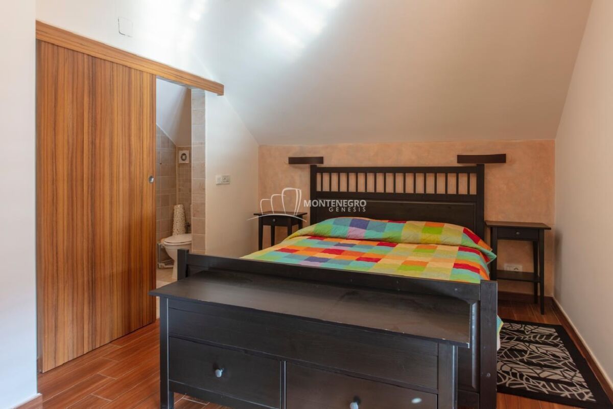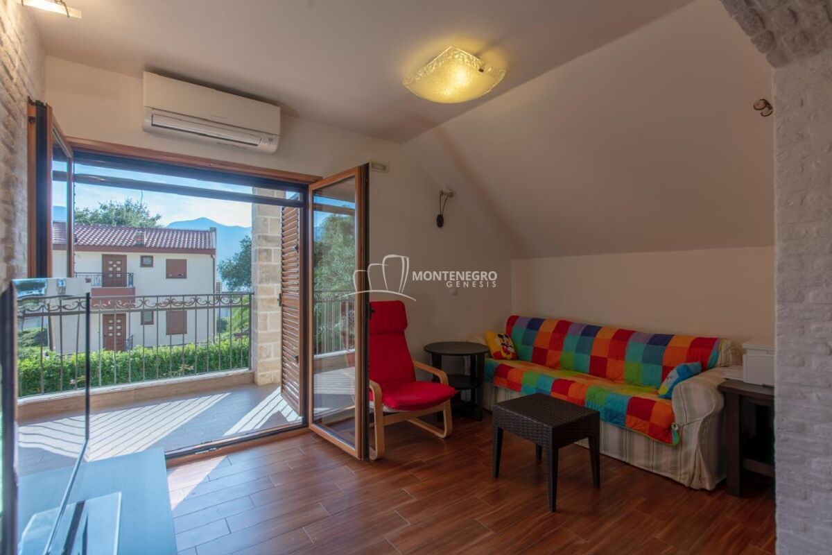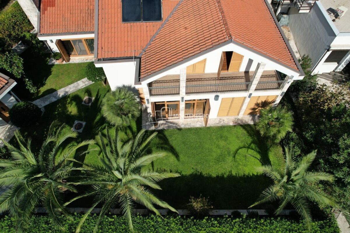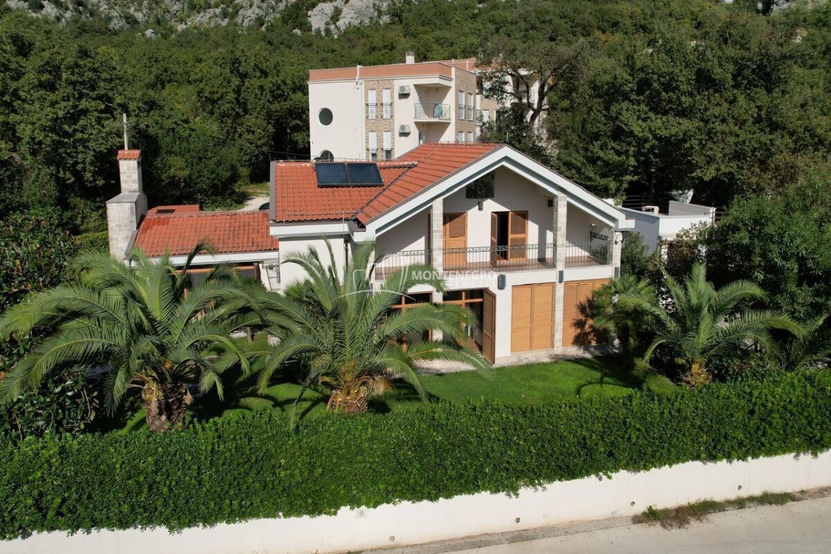 Na prodaju nova vila u Donjem Orahovcu površine 186 m2 sa pomoćnim objektom 30 m2 , namještana sa tehnikom . Vila je smještena na u ograđenom placu od 500 m². Dvorište je lijepo uređeno, sa palmama i mediteranskim biljem.Osnovni podaci:• Glavna kuća: 186 m²• Pomoćni objekat: 30 m²• Plac: 500 m²• Privatni prilaz i parking• Djelimičan pogled na more• Tursko kupatilo u sklopu kućeVila ima velike terase, mnogo prirodnog svjetla i pruža potpunu privatnost. Donji Orahovac je mirna i prestižna lokacija, blizu mora i Kotora.