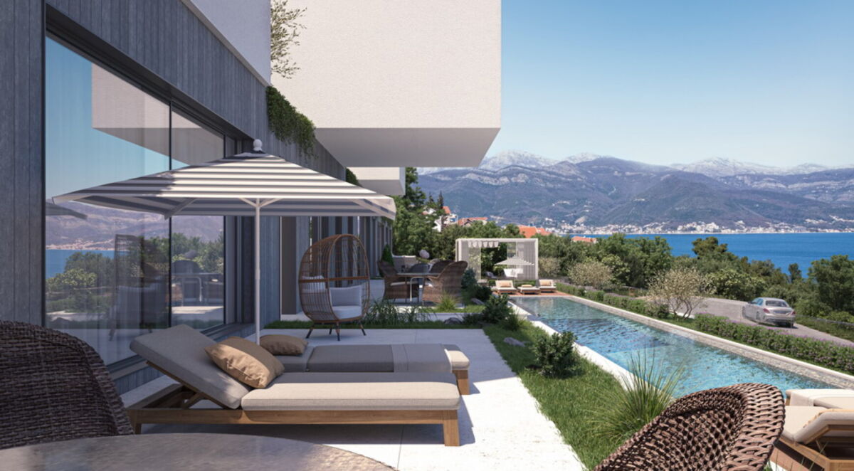 Prednosti ovog kompleksa: – promišljen dizajn, – moderan nivo komfora, – praktična funkcionalnost, – odlična lokacija u mirnom i izolovanom delu, – visokokvalitetna gradnja i arhitektonska rešenja sa harmoničnim unutrašnjim prostorom za maksimalni komfor. Trenutno su na prodaju sledeći stanovi: A1 * 157 m2 (uključujući terasu i ostavu) * 1 spavaća soba, 2 kupatila * Cena: 529.199 € A5 – duplex * 119 m2 (uključujući terasu i ostavu) * 2 spavaće sobe, 3 kupatila * Cena: 496.199 € A7 * 183 m2 (uključujući terasu i ostavu) * 2 spavaće sobe, 3 kupatila * Cena: 639.499 € Svi stanovi imaju kuhinju sa aparatima uključenim u cenu. Garažna mesta se prodaju zasebno – 22.500 €
